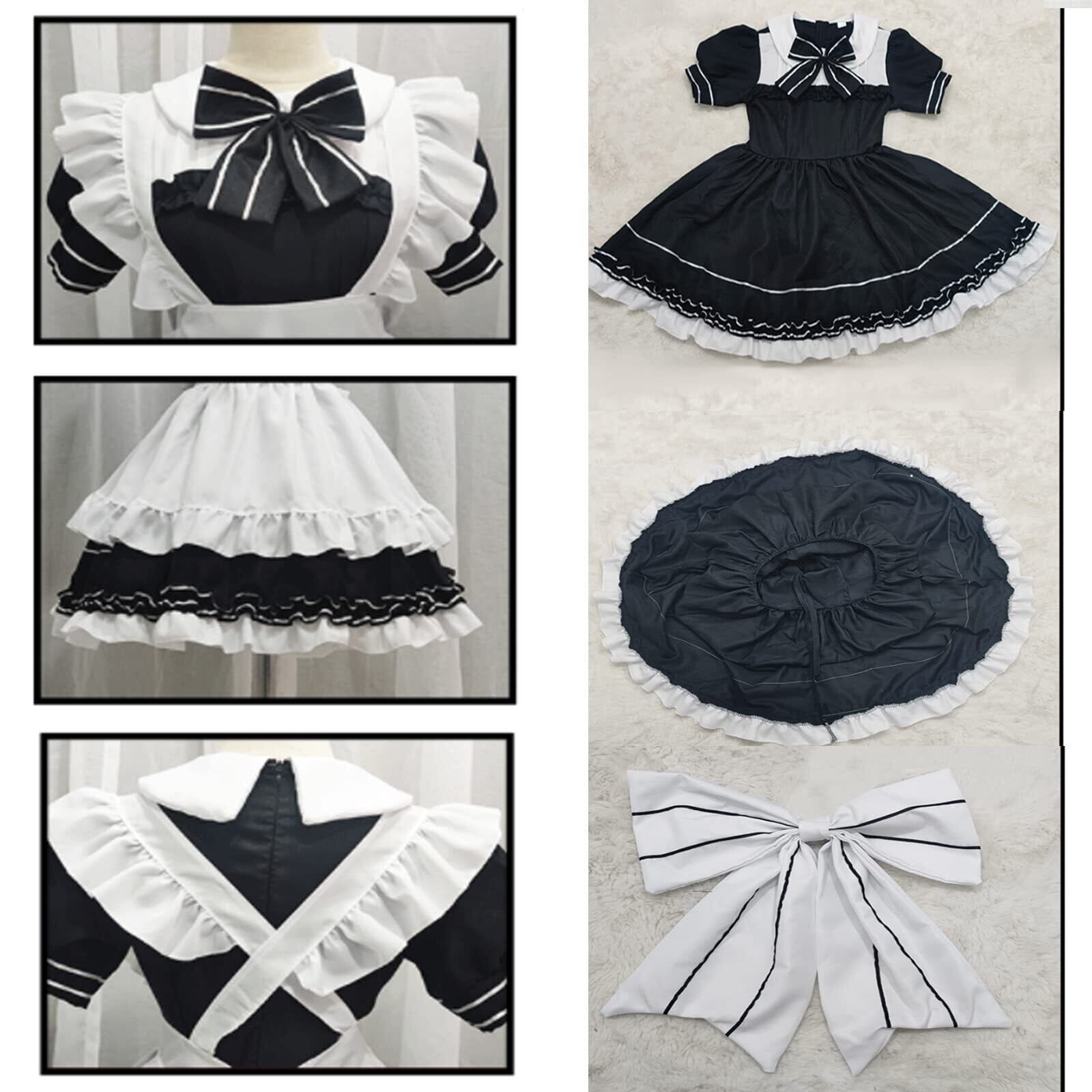 【新着商品】[FULINE] メイド服 可愛い メイドコスチューム 定番 ショート丈 半袖 メイド レディースコスチューム メイド喫茶 メイドワンピース ウェイトレスコスプレ 萌え エプロン ハロウィン仮装