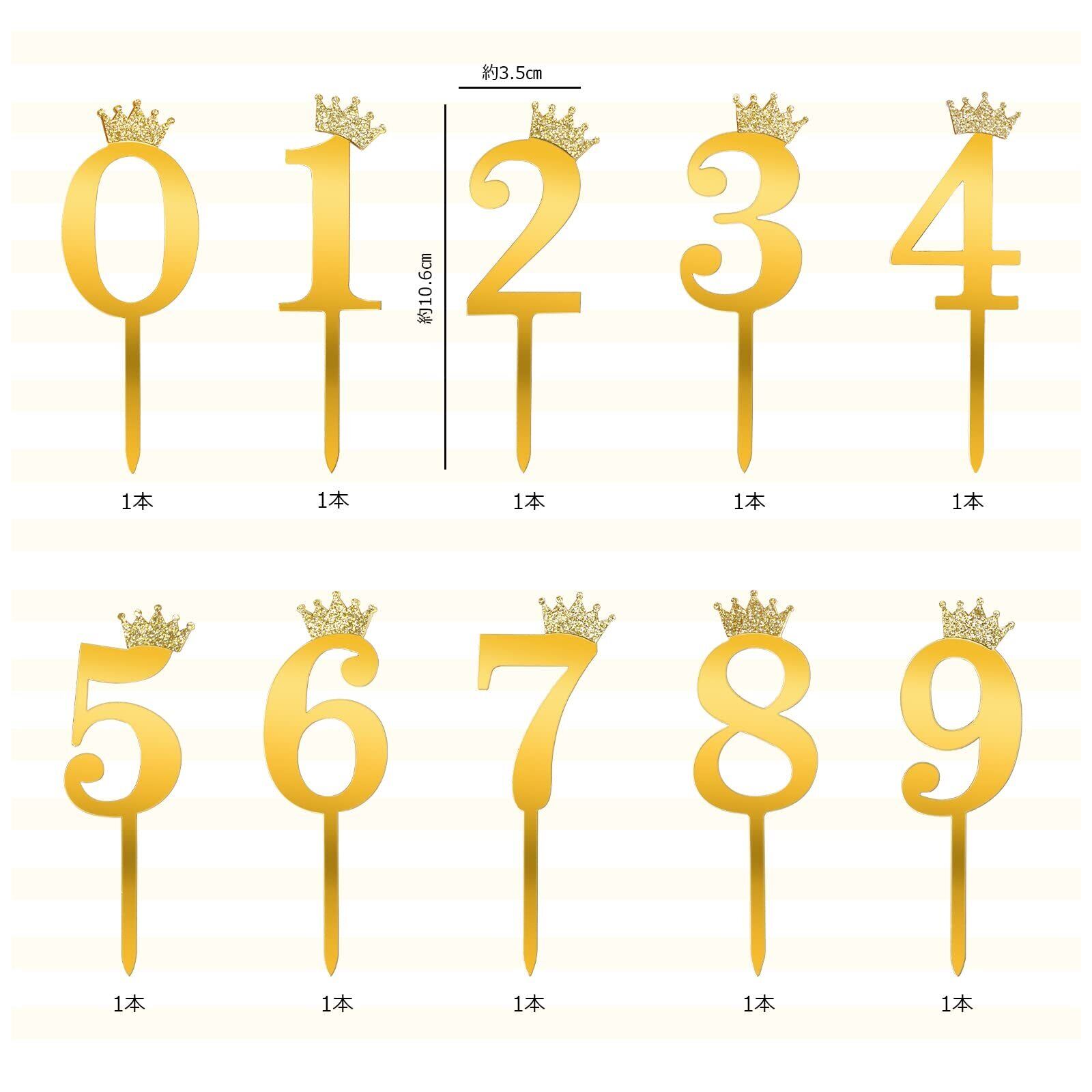 Paready ケーキトッパー 数字 誕生日 ケーキ飾り 10点セット カップケーキ ピック お祝い 記念日 ケーキデコレーション バースデーケーキ 飾り 装飾 番号0-9 ゴルード