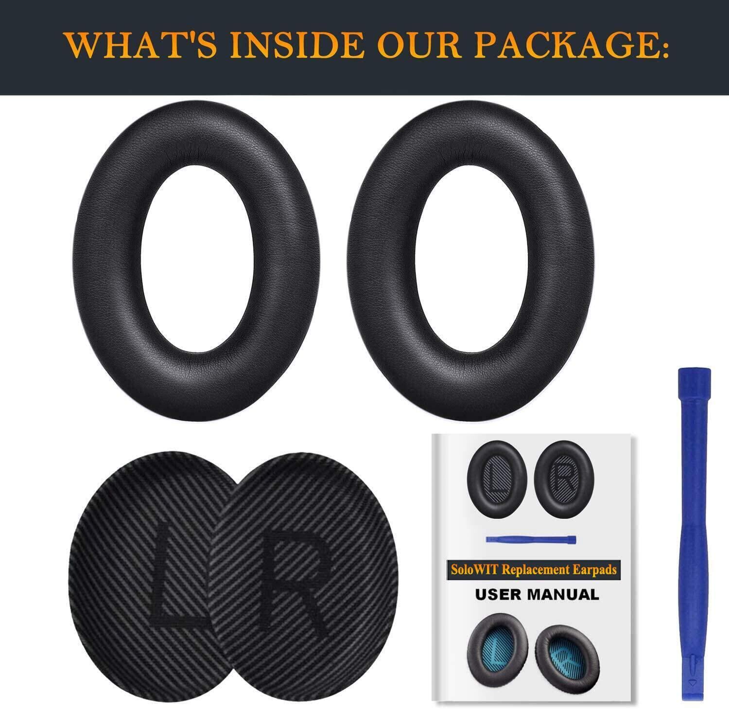 SoloWIT イヤーパッド イヤークッション 交換用 Bose QuietComfort 35 & 35ii(QC35 & QC35ii)に対応 ヘッドフォンに適用 ヘッドホンパッド 遮音 ソフトレザー 高密度フォーム (ブラック)