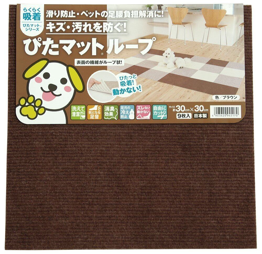 ワタナベ工業 国産タイルカーペット 吸着ぴたマット ループ 9枚組 30X30cm ブラウン