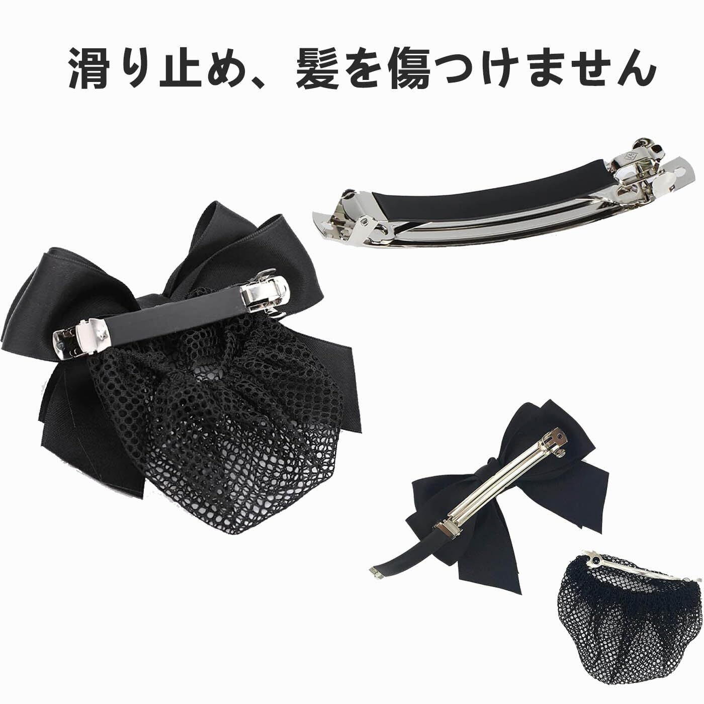 【在庫処分】3個セット シニヨンネット バレッタ ネット付き,BetterJonny お団子ネットリボン 大きめヘアネット 髪ネットリボン レディースヘアアクセサリー 髪留め 黒 シンプル 入学式 卒業式 成人式