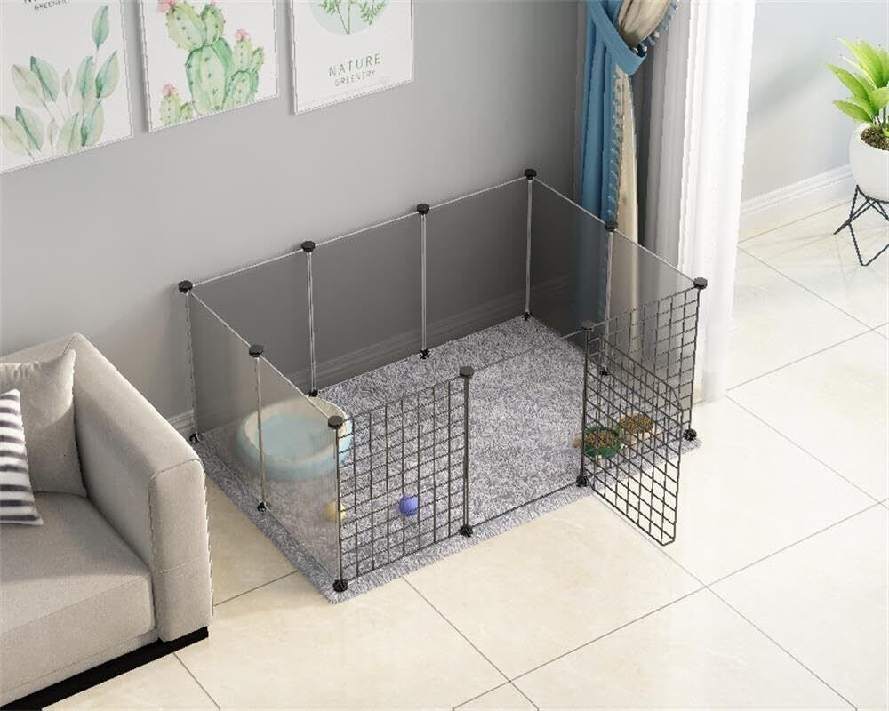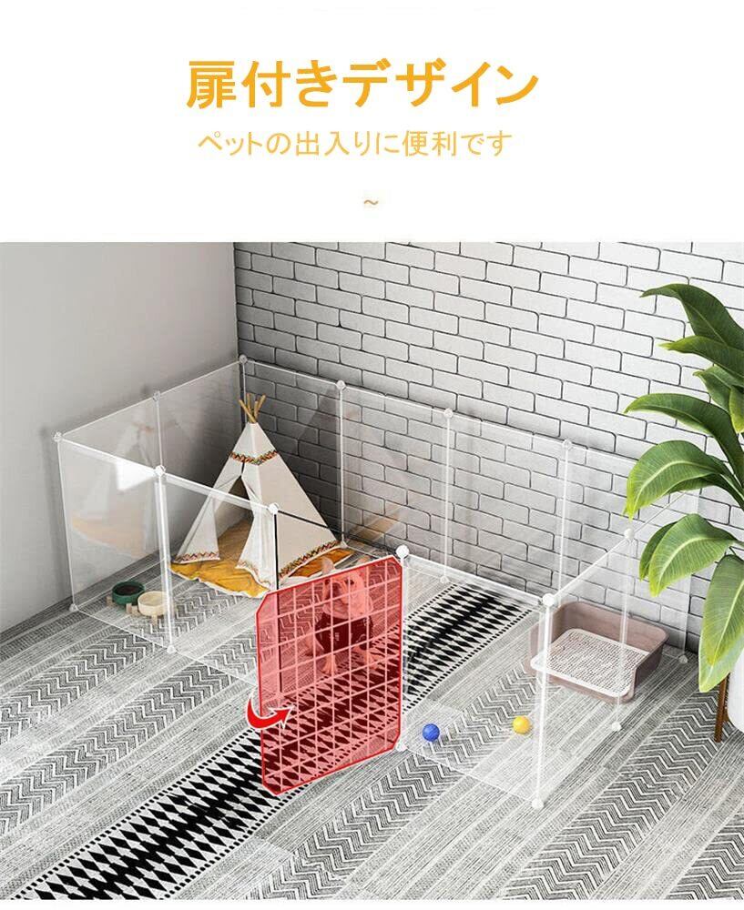 【軽量なプラスチックパネル、ペットの様子が見える】 グレー透明のパネルを組み立てると、ペットの姿を一目で確認できるフリースペースが完成。パネルは軽量なプラスチック製のため、力仕事が苦手な人でも扱いやすいですよ.