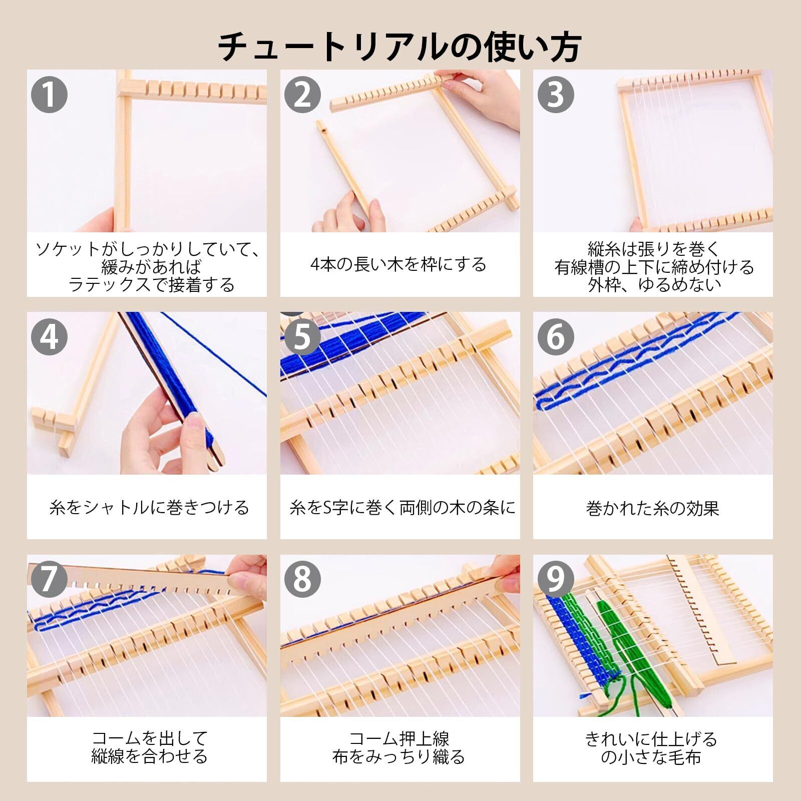 【高品質の素材】私たちの編み機は、高品質の木材でできており、耐久性があり、長寿命です。設置が簡単な織機です、あなたのセンスで素敵なハンドメイドの作品がお作りいただけます。