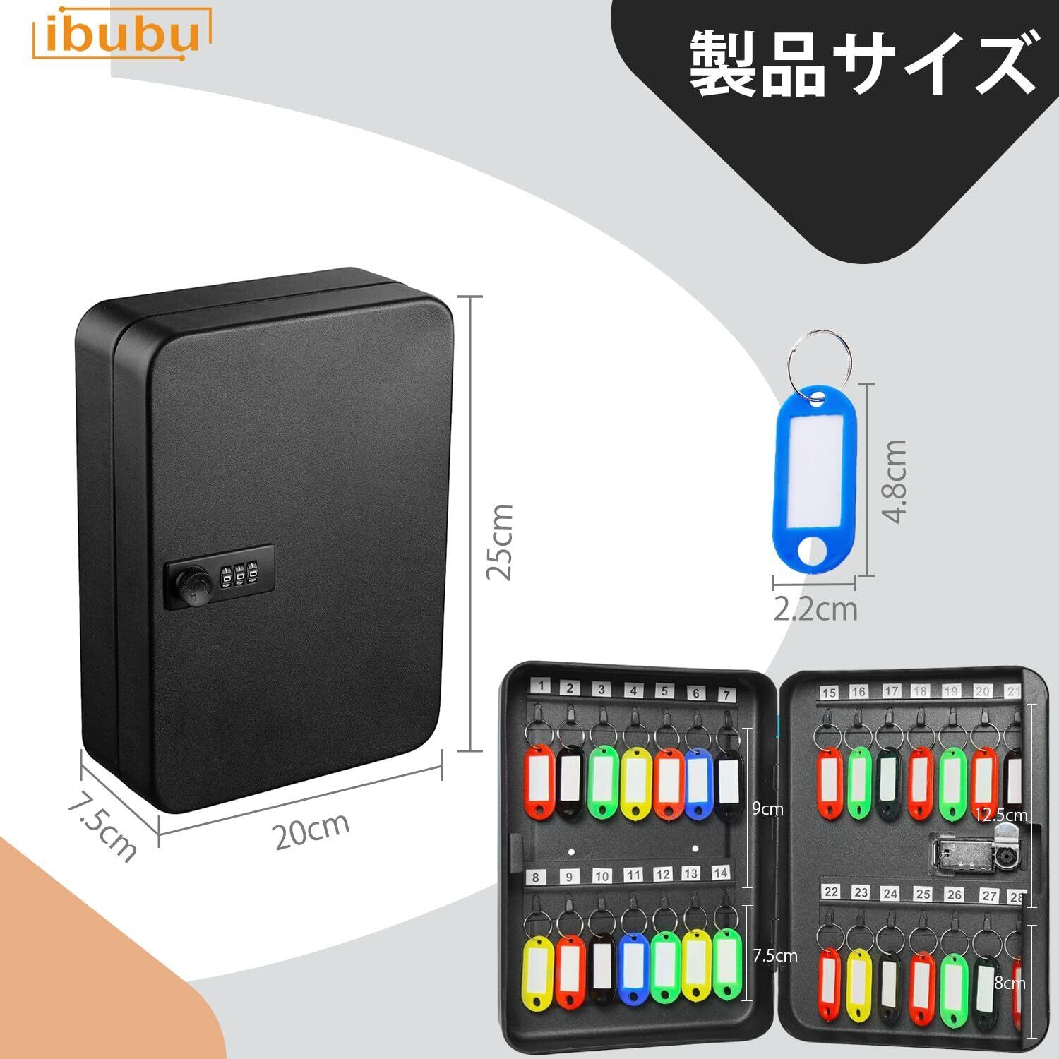ibubu キーボックス 28キー キーケース 鍵収納ボックス壁掛け セキュリティキーボックス キー収納 暗証番号 3桁ダイヤルロック式 専用キーホルダー付き 鍵管理 防塵カバー 防犯 盗難防止 オフィス用 屋外 玄関 倉庫 家庭用 キーホルダー28個 ブラック