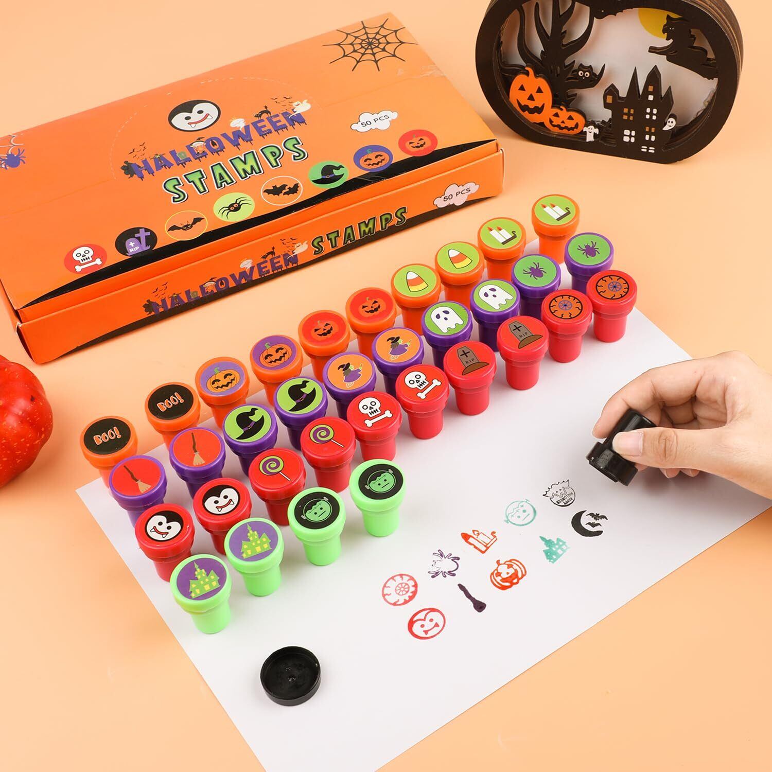 【在庫セール】FINGOOO ハロウィン スタンプ 景品 50個 教師用ご褒美 インク付き プレゼント パーティー 6歳以上 可愛い (ハロウィンB)