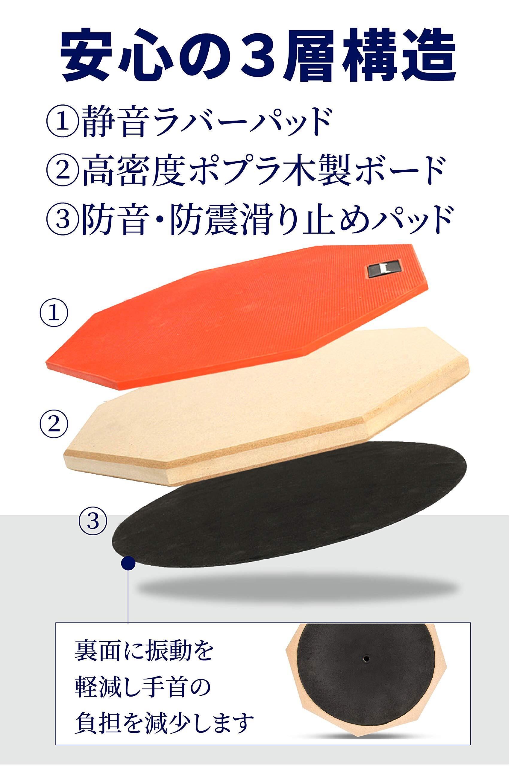 【パッド材質】高弾性ラバー 吸音性 耐摩耗性に優れる。 裏面 滑り止めパッド 振動を軽減し手首の負担を減少