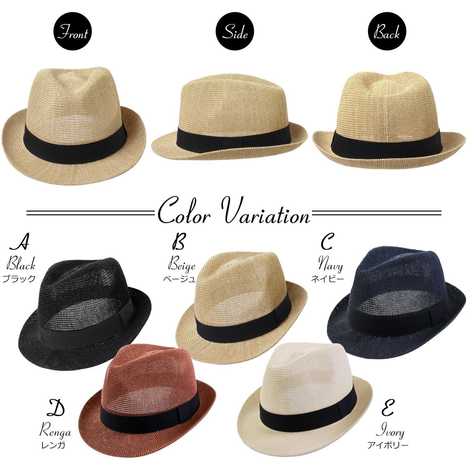 【Rachel】メンズ 中折れハット 無地 サイズ調整 折り畳み サーモ 麦わら帽子 男女兼用 ユニセックス ストローハット