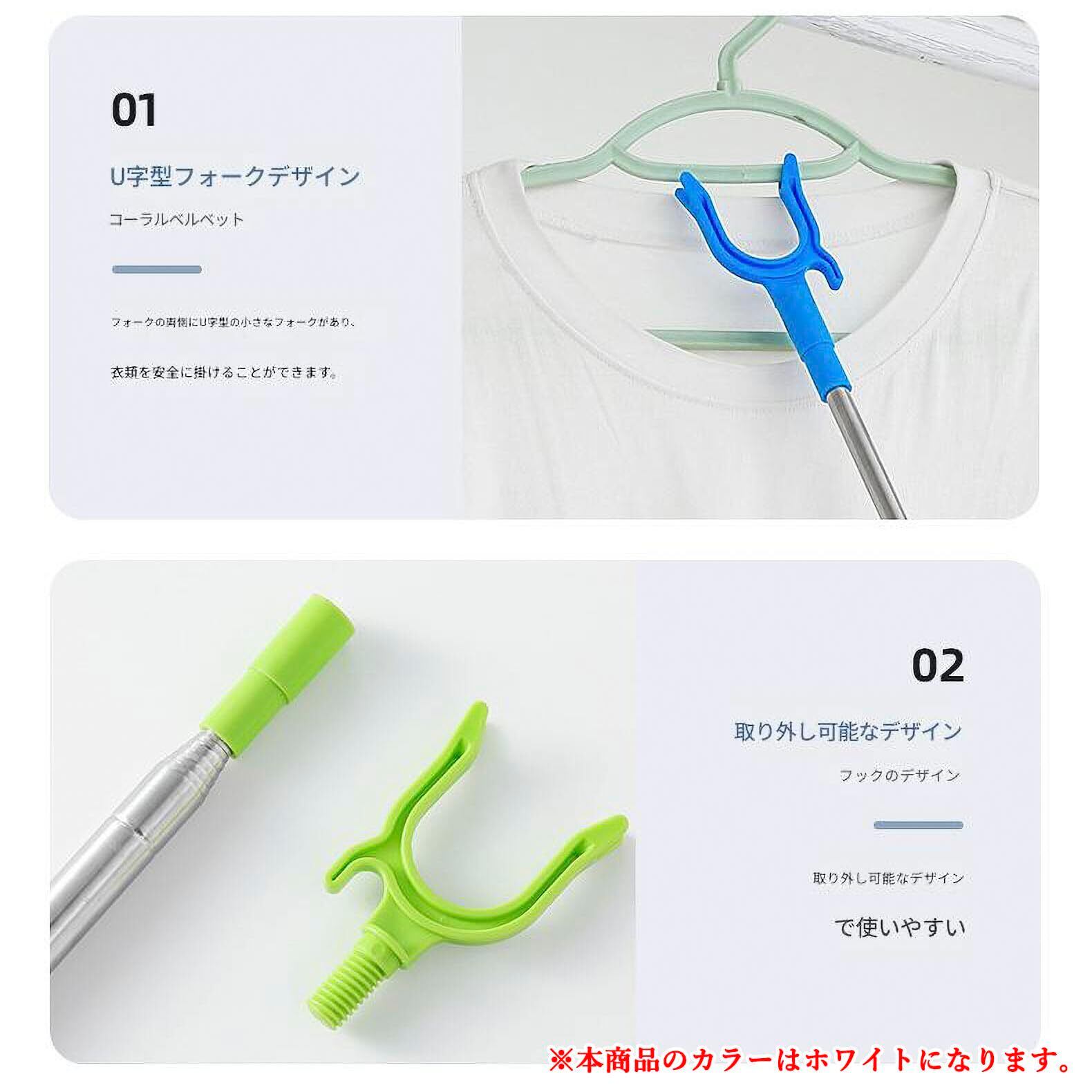 【伸縮リーチポール】自由に伸ばすことができるので、洗濯も楽にできます最短31cm、最長108cm、使用していないときに戻してスペースを節約できます