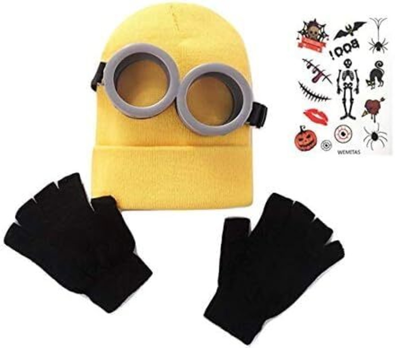 [wemitas] ハロウィン コスプレ ミニオン 風 コスプレ ゴーグル 帽子 手袋 タトゥーシール セット (Aセット)