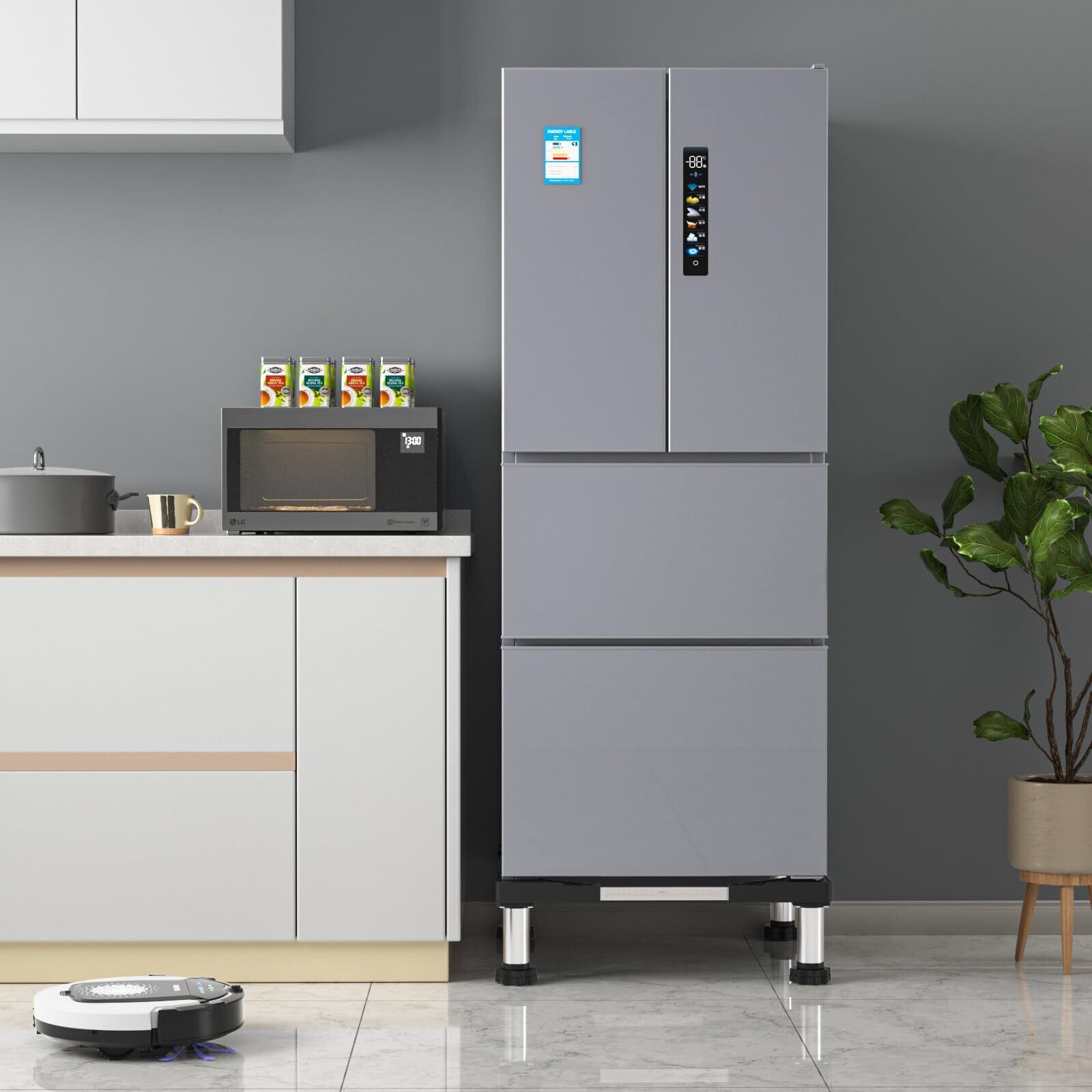 【安定性アップ】:太いジャッキ4本が付き、耐荷重もアップされました。安定感抜群!高さを作り、最大21cmアップなので、家電下の掃除が便利に、排水もスムーズになりました。