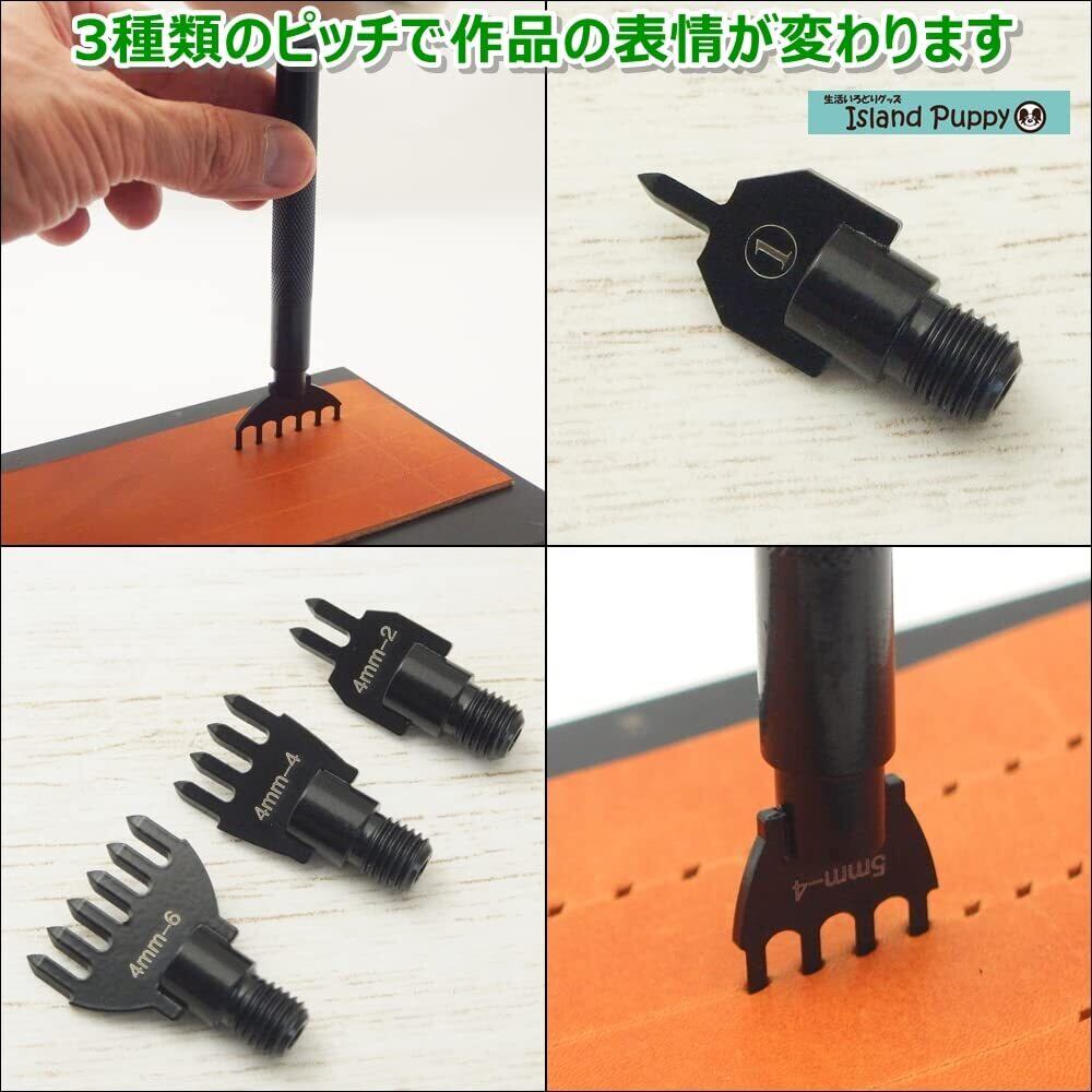 [アイランドパピー] レザークラフト 菱目打ち カートリッジ 付け替え セット 3 サイズ 打ち具 (3サイズ×本目4種)