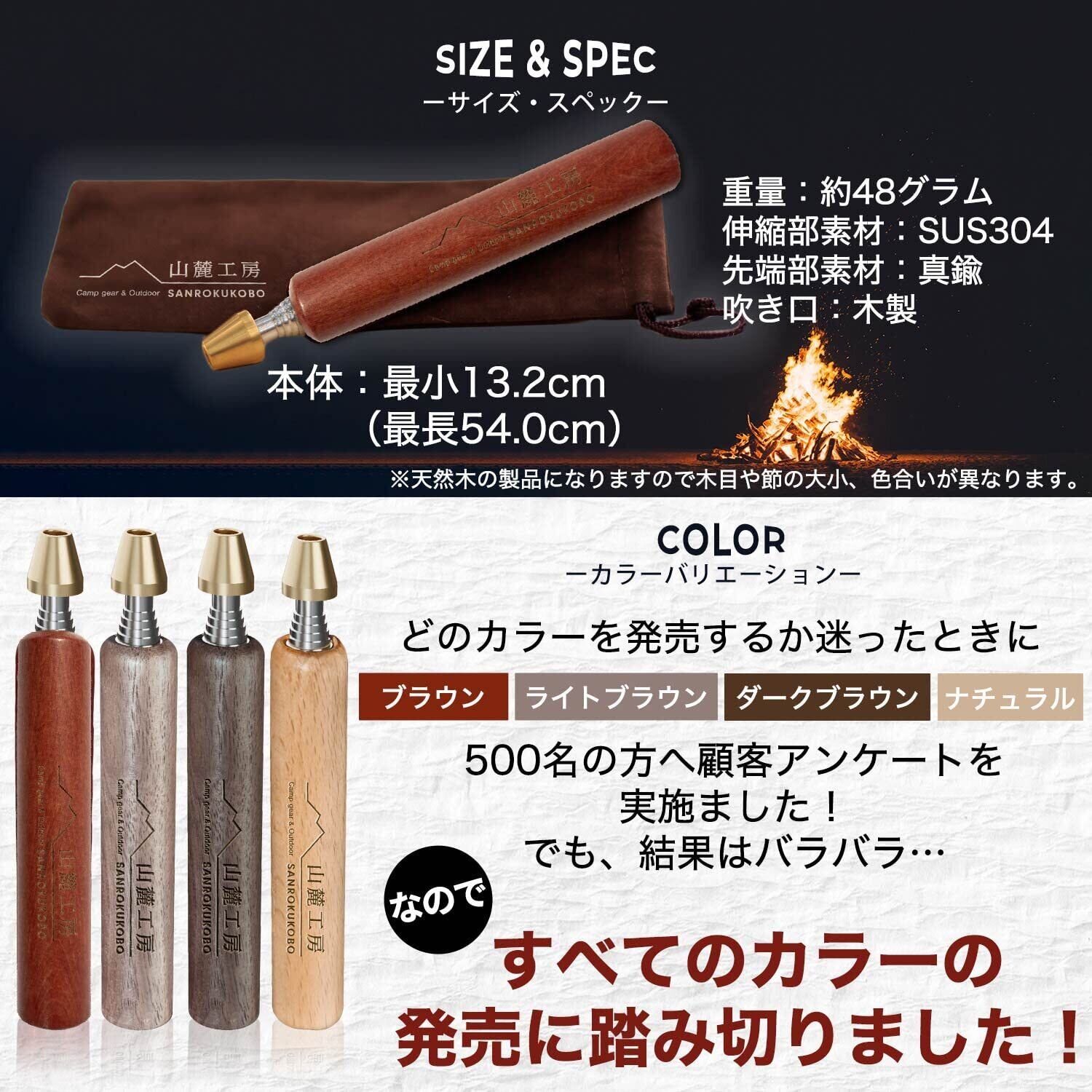 山麓工房 現役キャンパー監修 火吹き棒 火起こし 無期限メーカー 伸縮自在 コンパクト 収納ケース付き アウトドア キャンプ 焚き火 バーベキュー (レッドブラウン)
