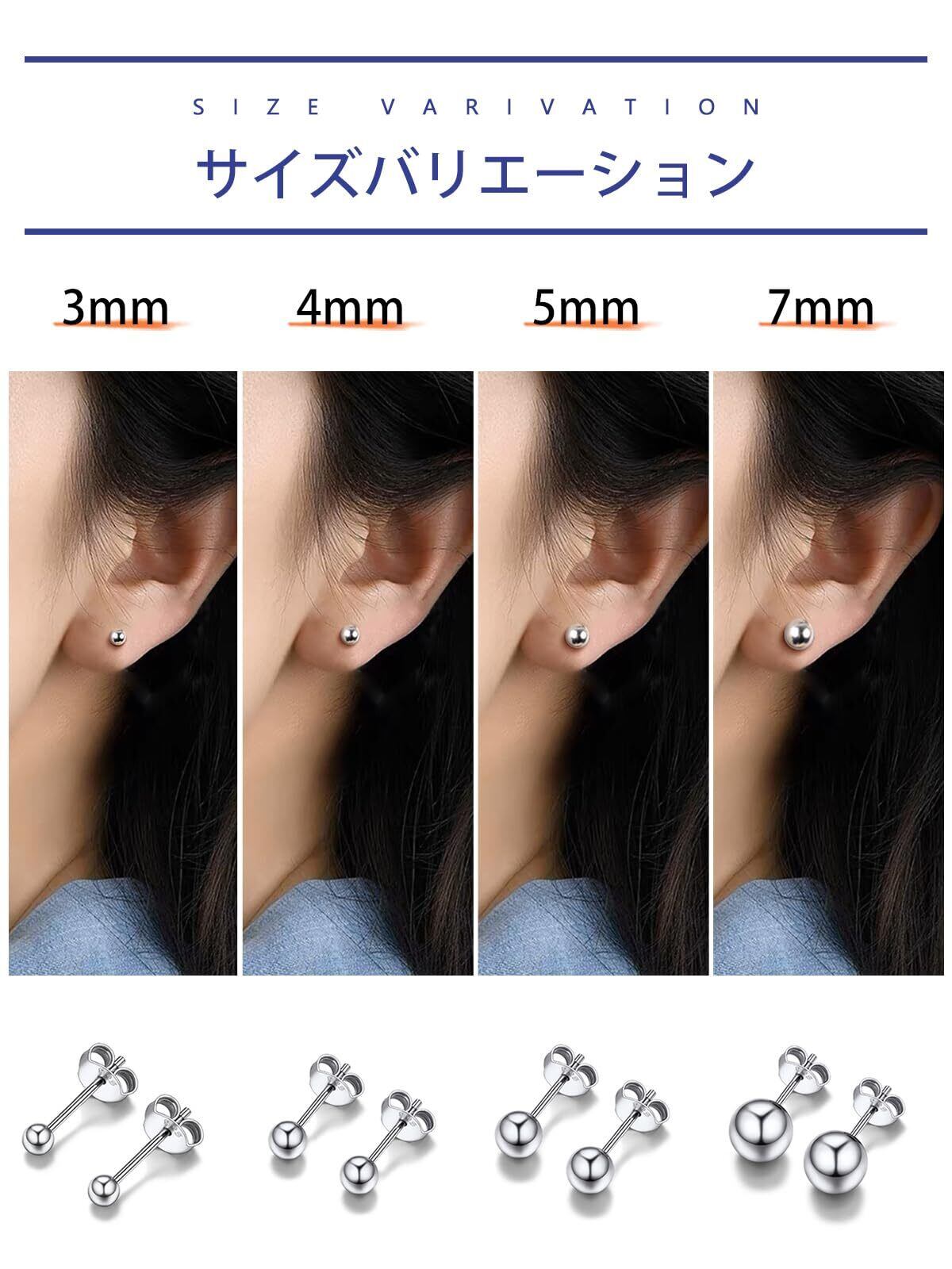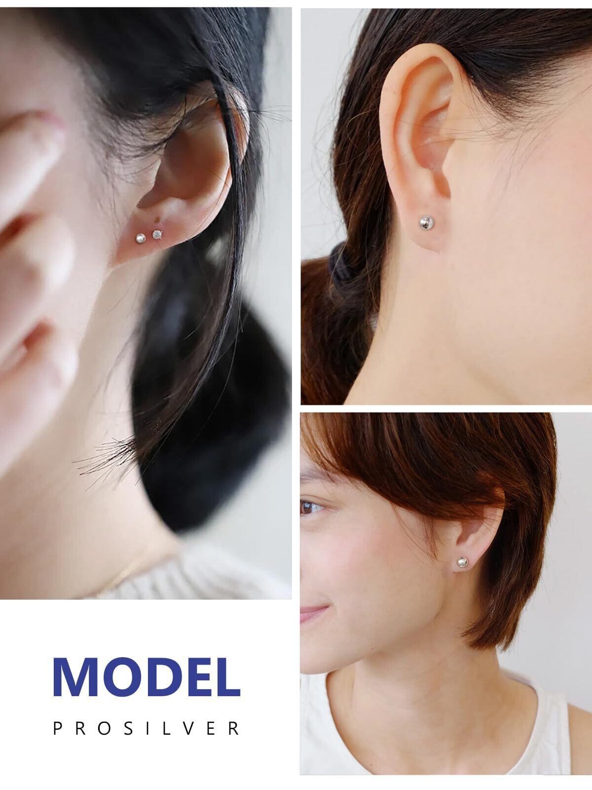 PROSILVER レディース ボールピアス つけっぱなし シルバー925 金属アレルギー対応 男女兼用 アクセサリー 普段使い シンプル 小さい 両耳 錆びない 3mm/4mm/5mm/7mm