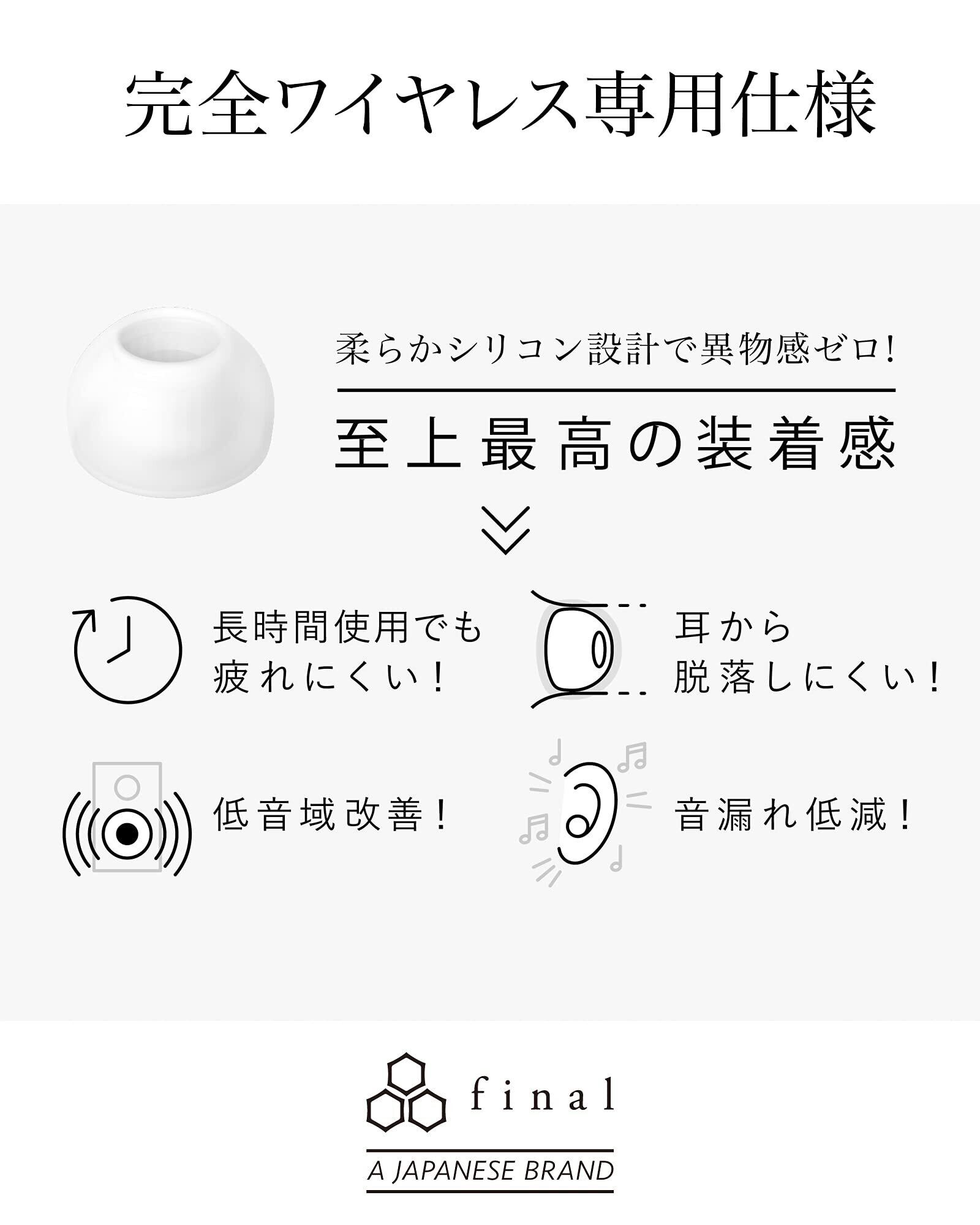 柔らかシリコン設計で異物感ゼロ。至上最高の装着感を実現したイヤーピースfinal TYPE E 完全ワイヤレス専用仕様。