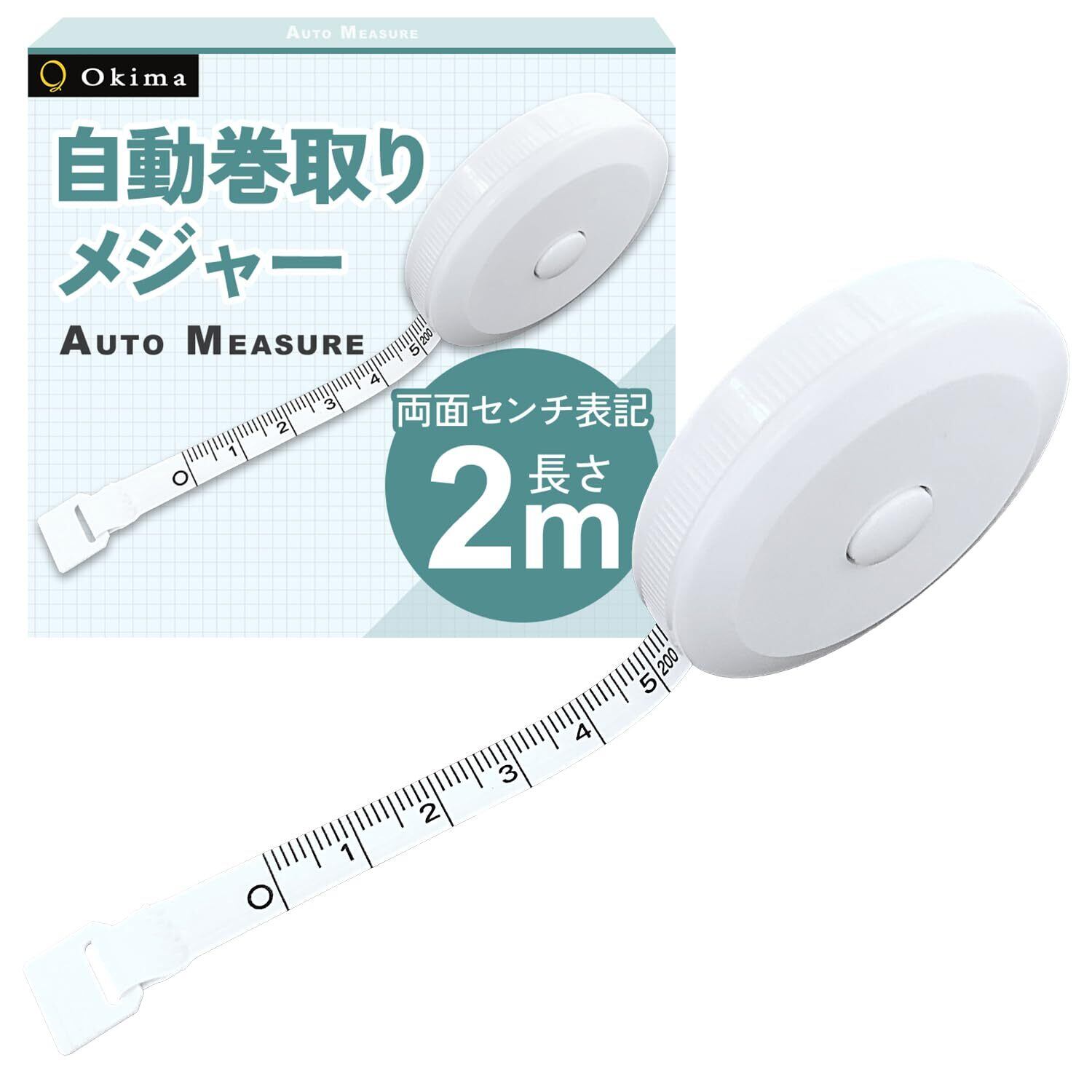 Okima メジャー 巻き尺 2m 裁縫 【両面センチ表記】 ウエスト バスト 手芸 洋裁 テープ 採寸 200cm コンパクト ホワイト (1個入り)