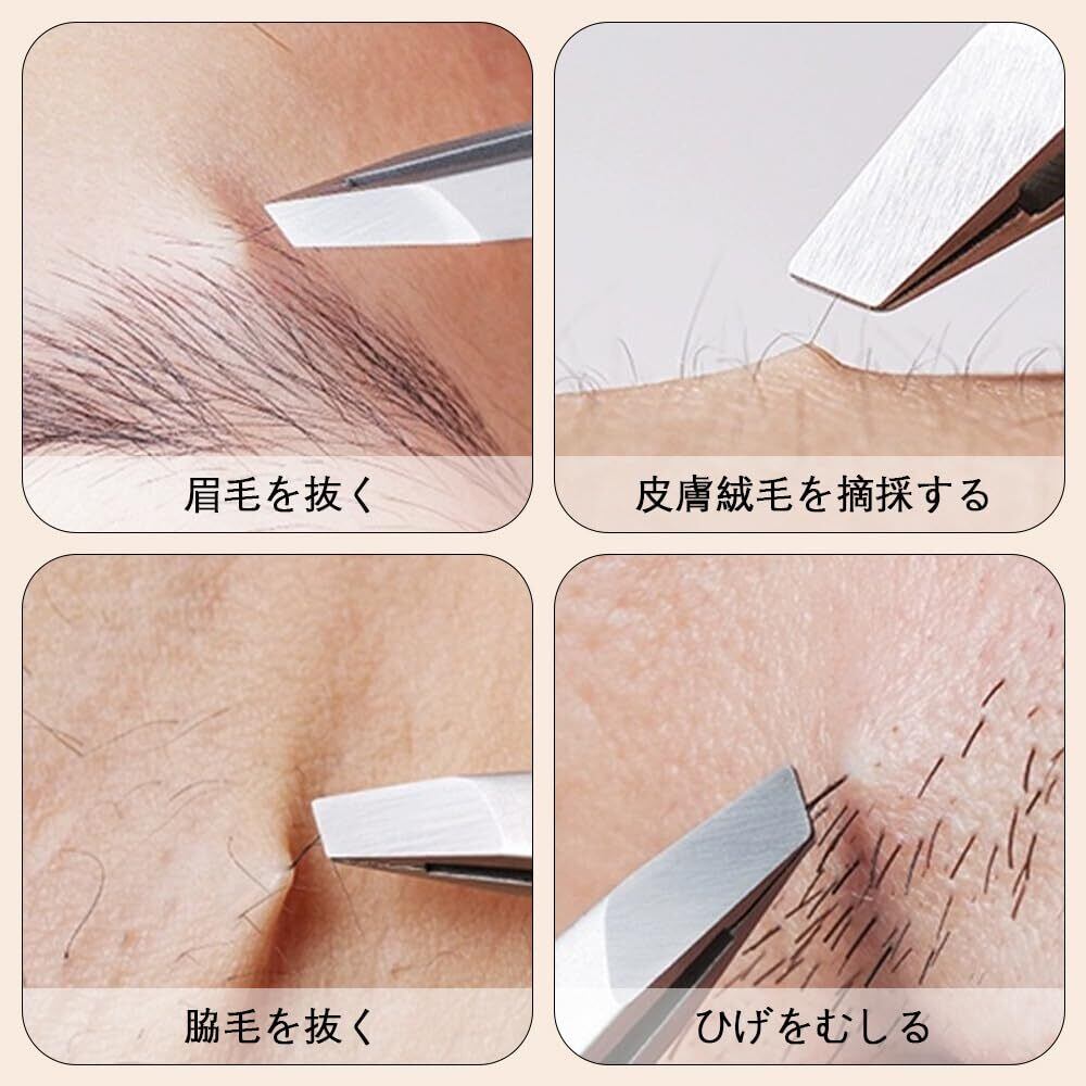 【 ベベルチップデザイン 】: 先端が斜めに設計されており、毛の密集した部位でも正確にしっかりと毛を掴むことができ、眉毛や毛のケアがしやすく、正確な脱毛を実現します。
