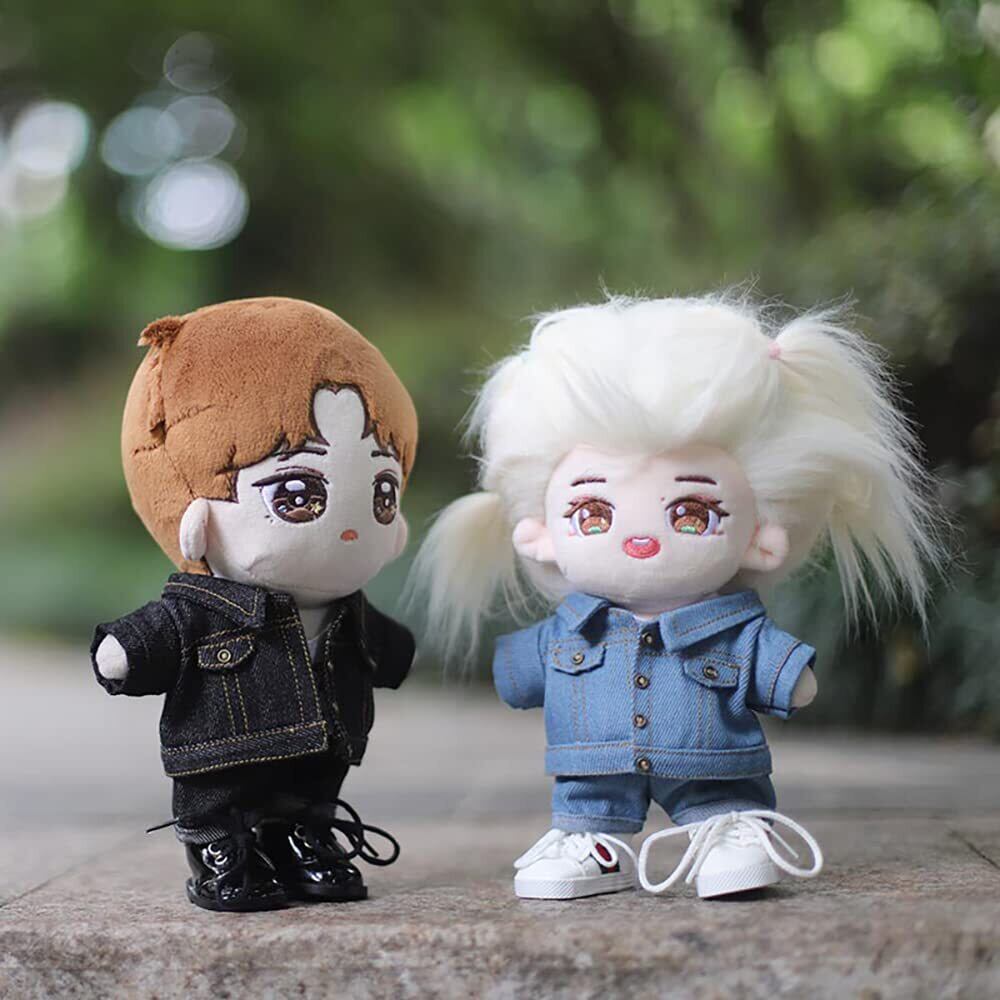 niannyyhouse 15cm ぬいぐるみ 服 ジーンズジャケット 白いTシャツ 綿人形の服 着せ替え (navy blue)