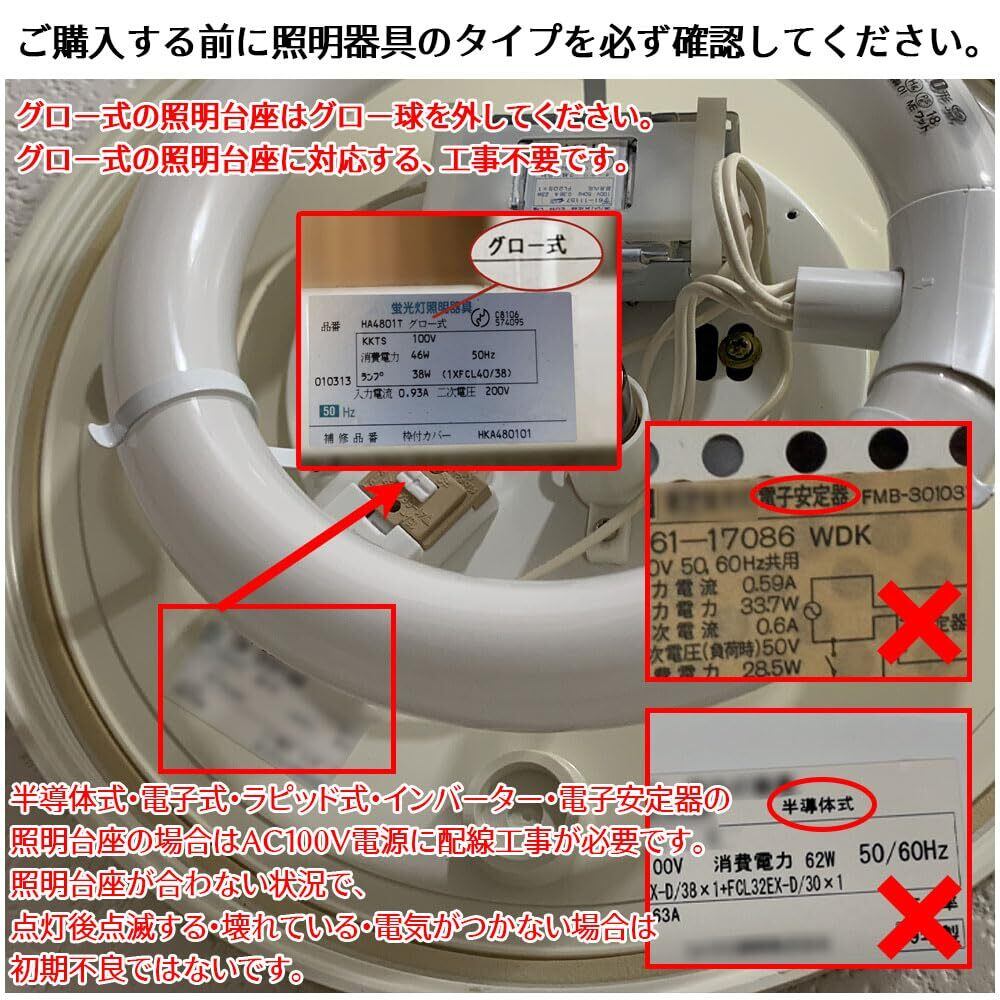 【※点灯方式】ご使用する前に必ずグロー球を外してください、グロー式の照明台座に対応する、工事不要です。ご購入する前に必ず照明台座の点灯方式を確認してください、不明の場合は照明台座のメーカに連絡してください。