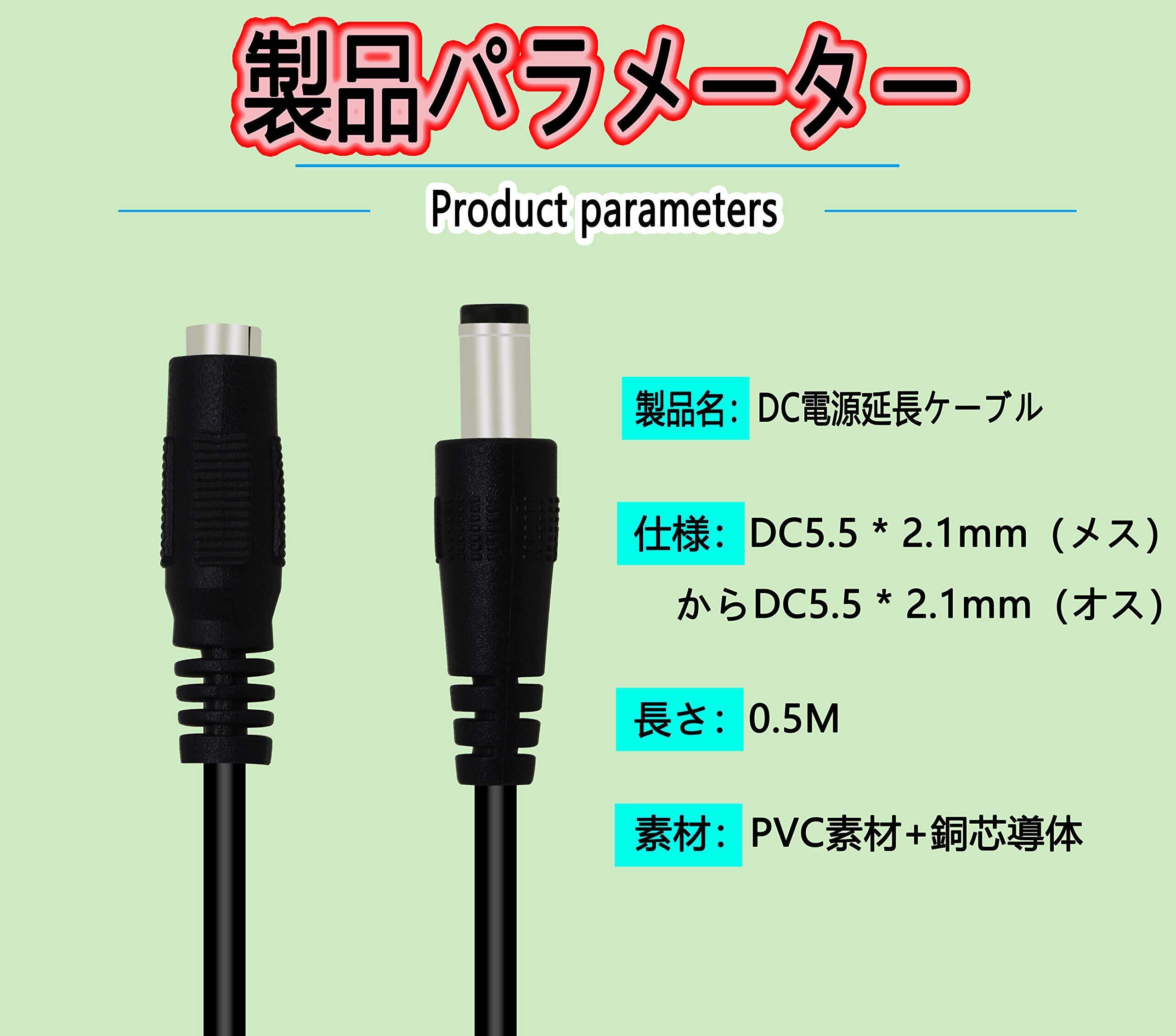 ★簡単なインストール:(DCプラグ規格:外径5.5mm,内径2.1mm)延長コードとして重宝しています,プラグアンドプレイ、必要に応じてこのケーブルを曲げたりねじったりすることができます、非常に柔軟な!