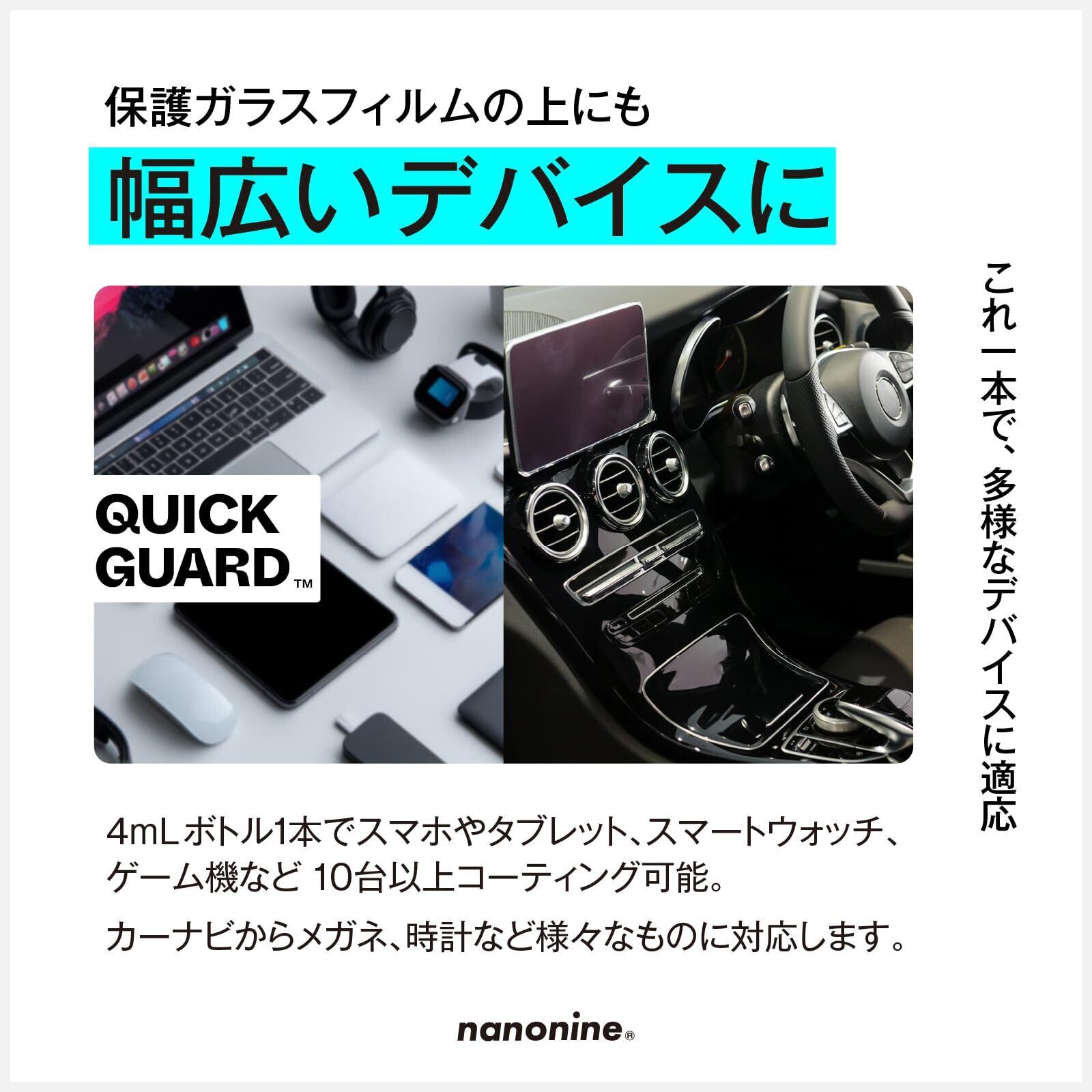 【数量限定】[ナノナイン] スマホコーティング クイックガード 高機能シリコーンコーティング 指滑り・防汚効果 日本製 全端末対応 4mL ? iPhone、Android、タブレット、カーナビなど (1箱)