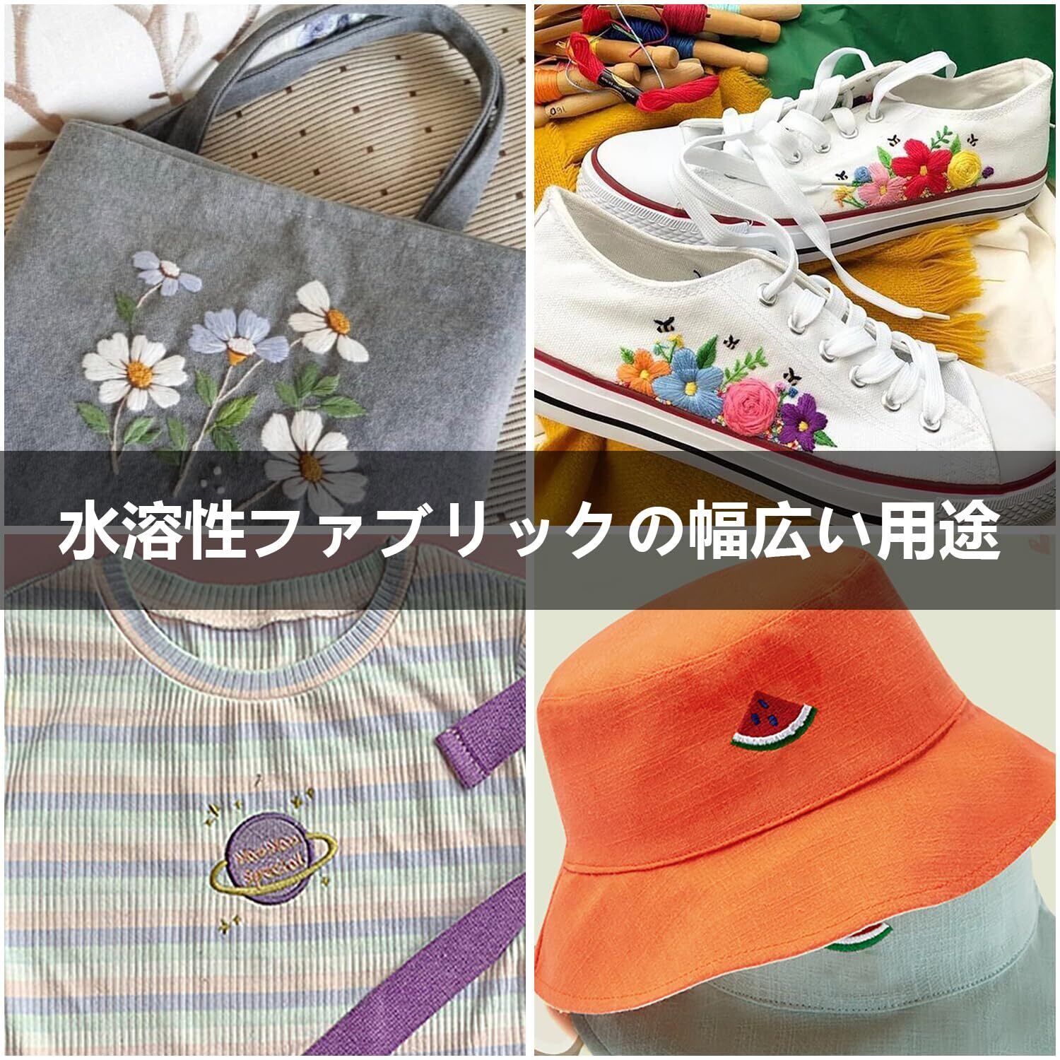 【使用範囲】薄手で柔らかく、伸縮性のある生地に適しており、タオル、ニット、薄手の伸縮素材、スポーツシューズ、ロングハイドなどへの刺しゅうに使用できます。 本製品は水溶性のため、乾燥した風通しの良い場所に保管してください。