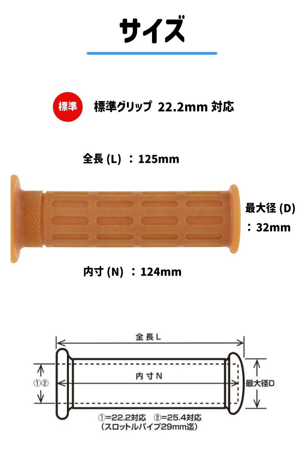 キジマ(Kijima) バイクパーツ グリップラバー 125mmx22.2φ 非貫通 汎用 生ゴム 201-034