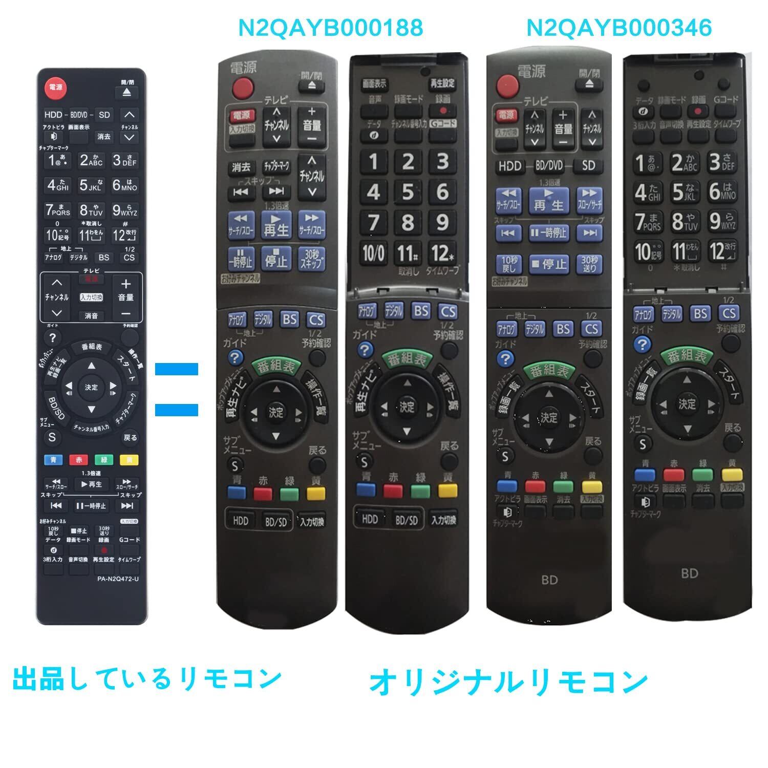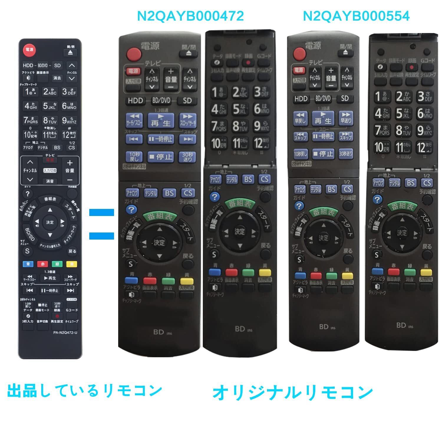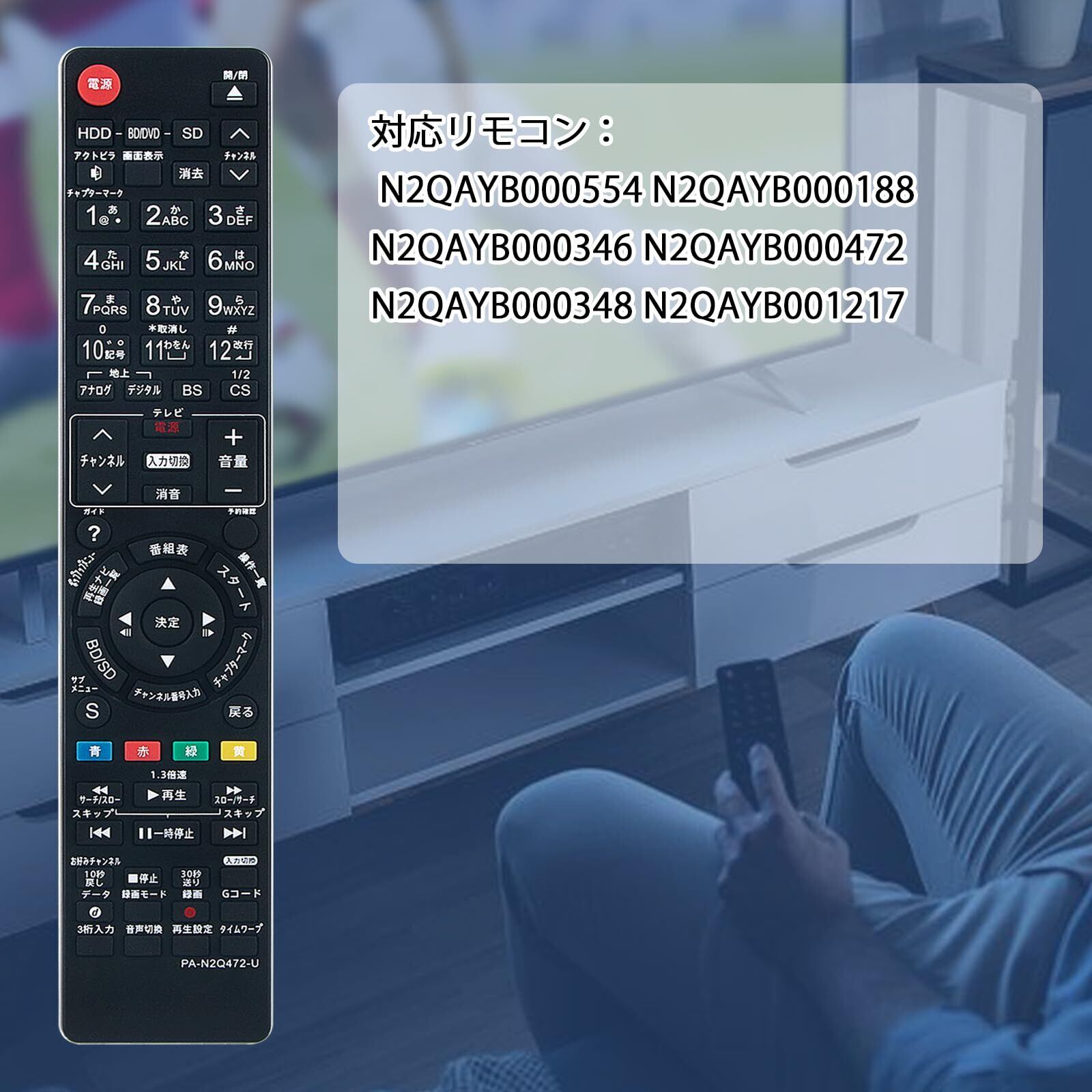 対応リモコン:N2QAYB000554 N2QAYB000188 N2QAYB000346 N2QAYB000472 N2QAYB000348 N2QAYB001217 適用機種:(N2QAYB000472)DMR-BWT1000 DMR-BWT2000 DMR-BW680 DMR-BW780 DMR-BW880 DMR-BR580 DMR-BWT1000K DMR-BWT2000K (N2QAYB000554)DMR-BR585 DMR-BWT2100 DMR-BWT1100 DMR-BW890 MR-BW690 DMR-BR590 DMR-BW695 DMR-BR585-K DMR-BWT2100K DMR-BWT1100K DMR-BR590-K DMR-BW890-K DMR-BW690-K (N2QAYB000346)DMR-BR550 DMR-BW570 DMR-BW770 DMR-BW870 DMR-BW970 DMR-BW950-K DMR-BW850-K DMR-BW750 DMR-BW970-K DMR-BW950-K DMR-BW770-K DMR-BW570-K DMR-BW870-K (N2QAYB000188)DMR-BR500 DMR-BW900 DMR-BW800 DMR-BW700(N2QAYB000348)DMR-XP15 DMR-XP200-K (N2QAYB001217)DMR-BZT701 DMR-BZT725 DMR-BZT730