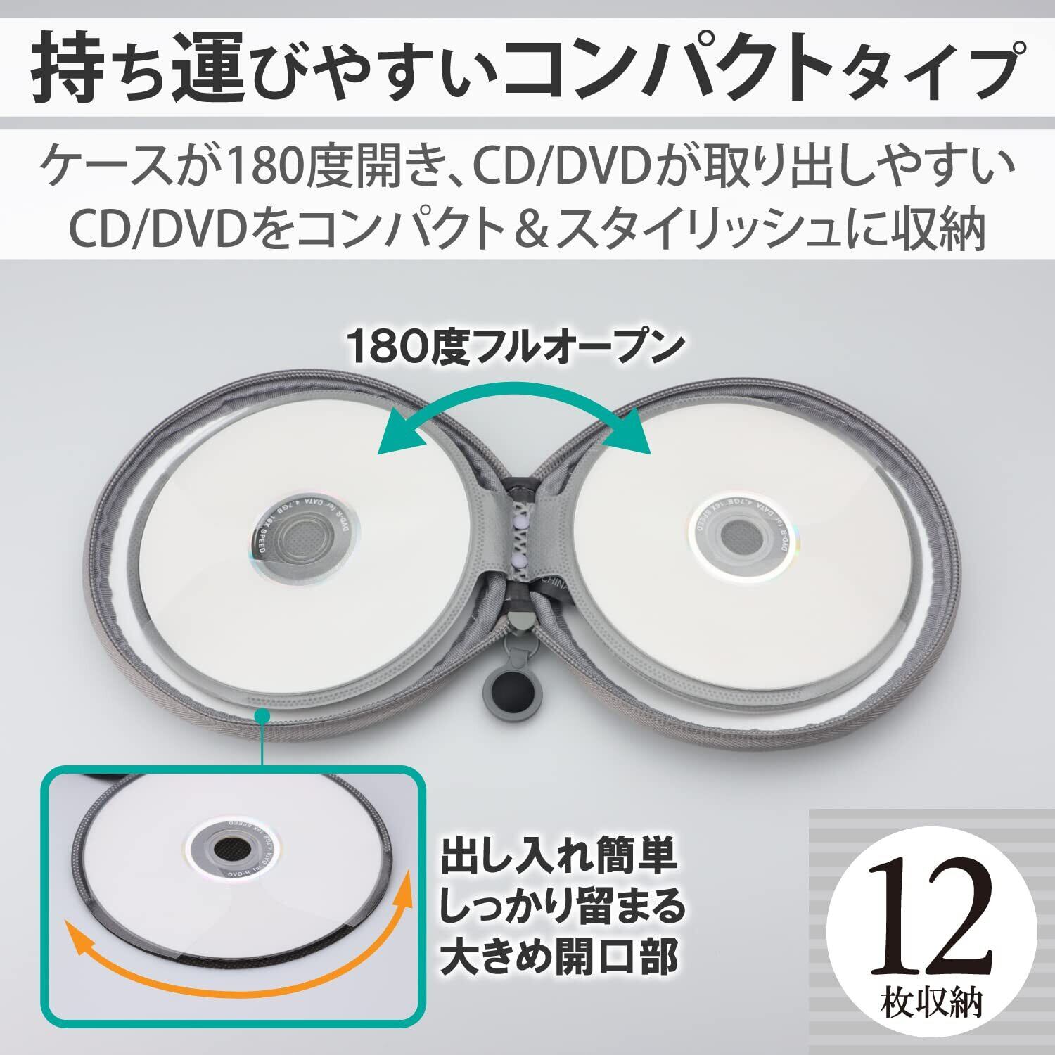■ケースが180度開き、CD/DVDが取り出しやすいフルオープンファスナーを採用しています。