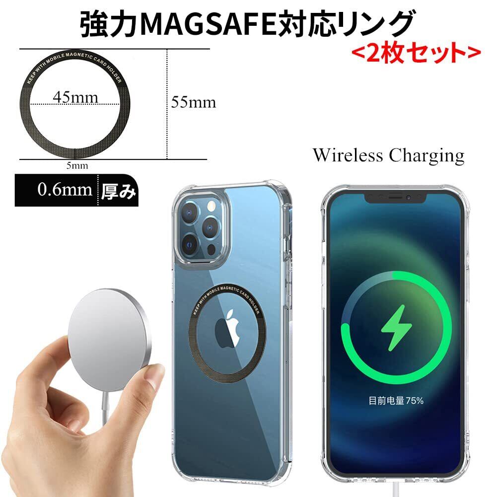 Magsafe用 リング シール 薄型 マグセーフ 強力 磁気増強 メタルリング ワイヤレス充電対応 Magsafe対応 ケース 2枚セット (O-ブラック)