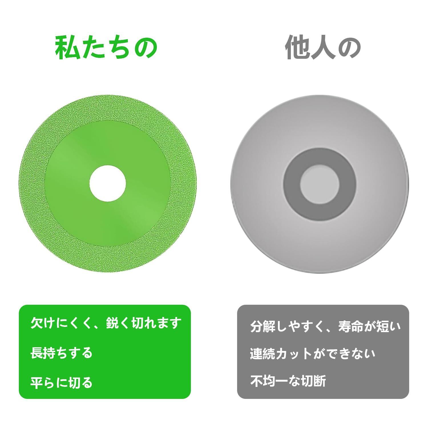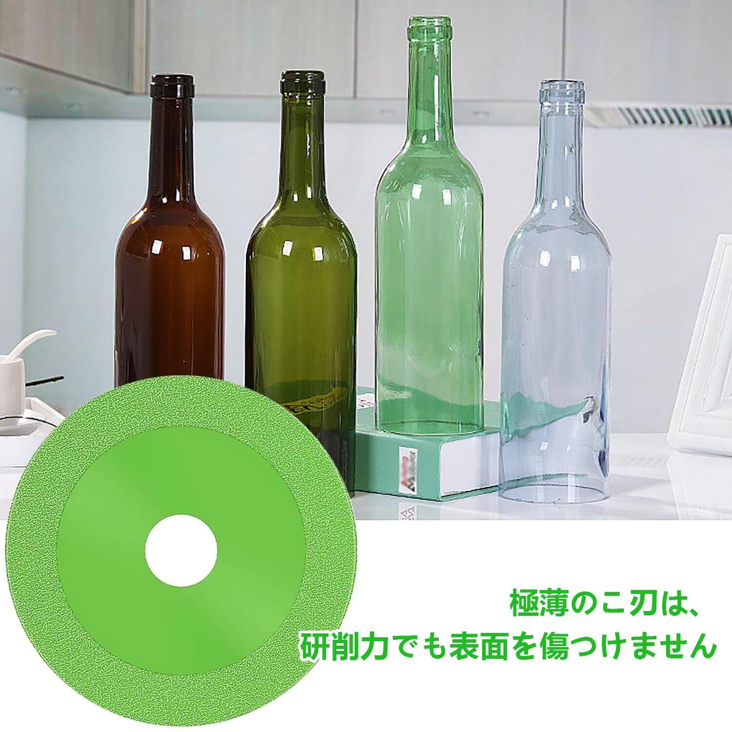 【幅広い用途】 このカットディスクは、ガラス、翡翠、水晶、瓶、セラミックなどの切断や研削に使えます。滑らかな切断、面取り、研磨に。ガラスや翡翠、水晶、ガラス瓶、セラミックタイルなど、通常のカッターでは切れないものも綺麗に切断することが可能です。