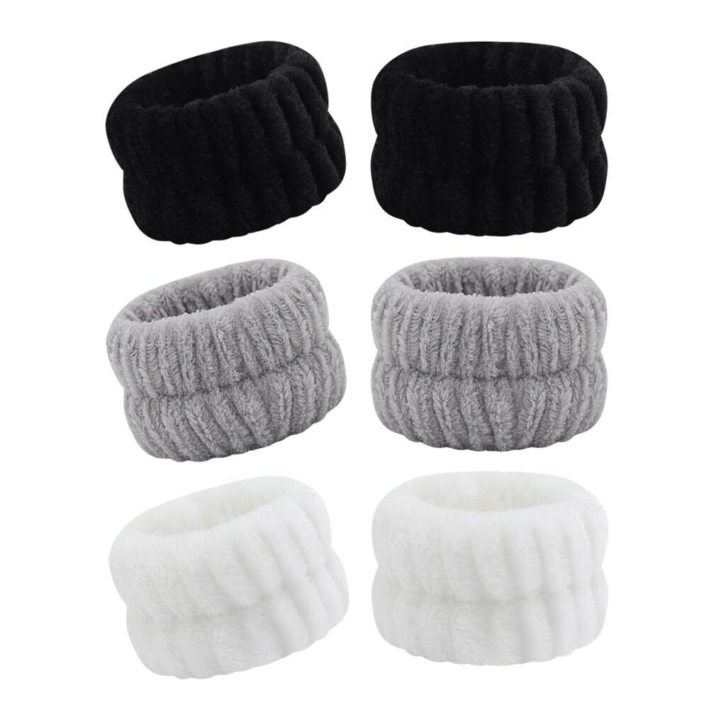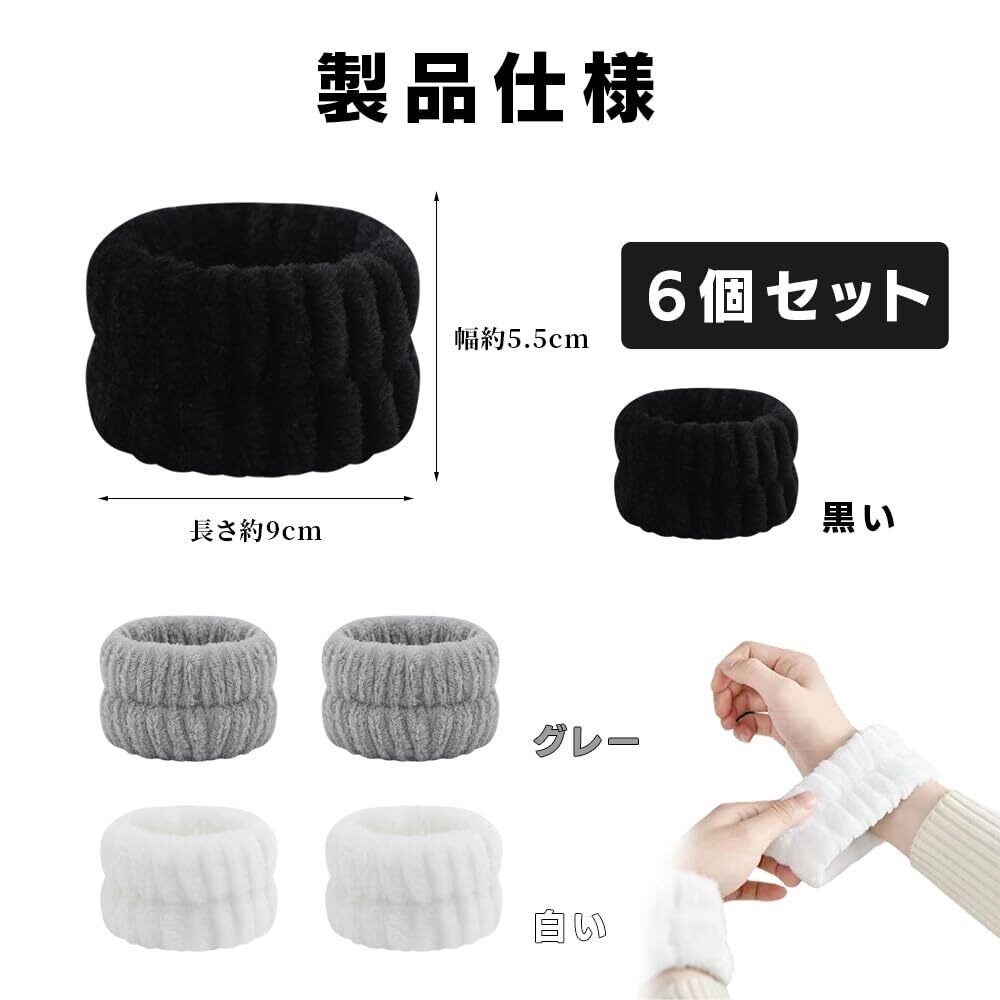 TUDOUZZZ 洗顔用リストバンド 吸水性・速乾性・柔らかい アームバンド 3色6個セット(白・黒・灰)伸縮性 袖濡れ防止 ヘアバンド 手首バンド 吸水リストバンド 吸水性良い フェイスバンド 多機能 男女兼用 家事・洗顔・運動に最適