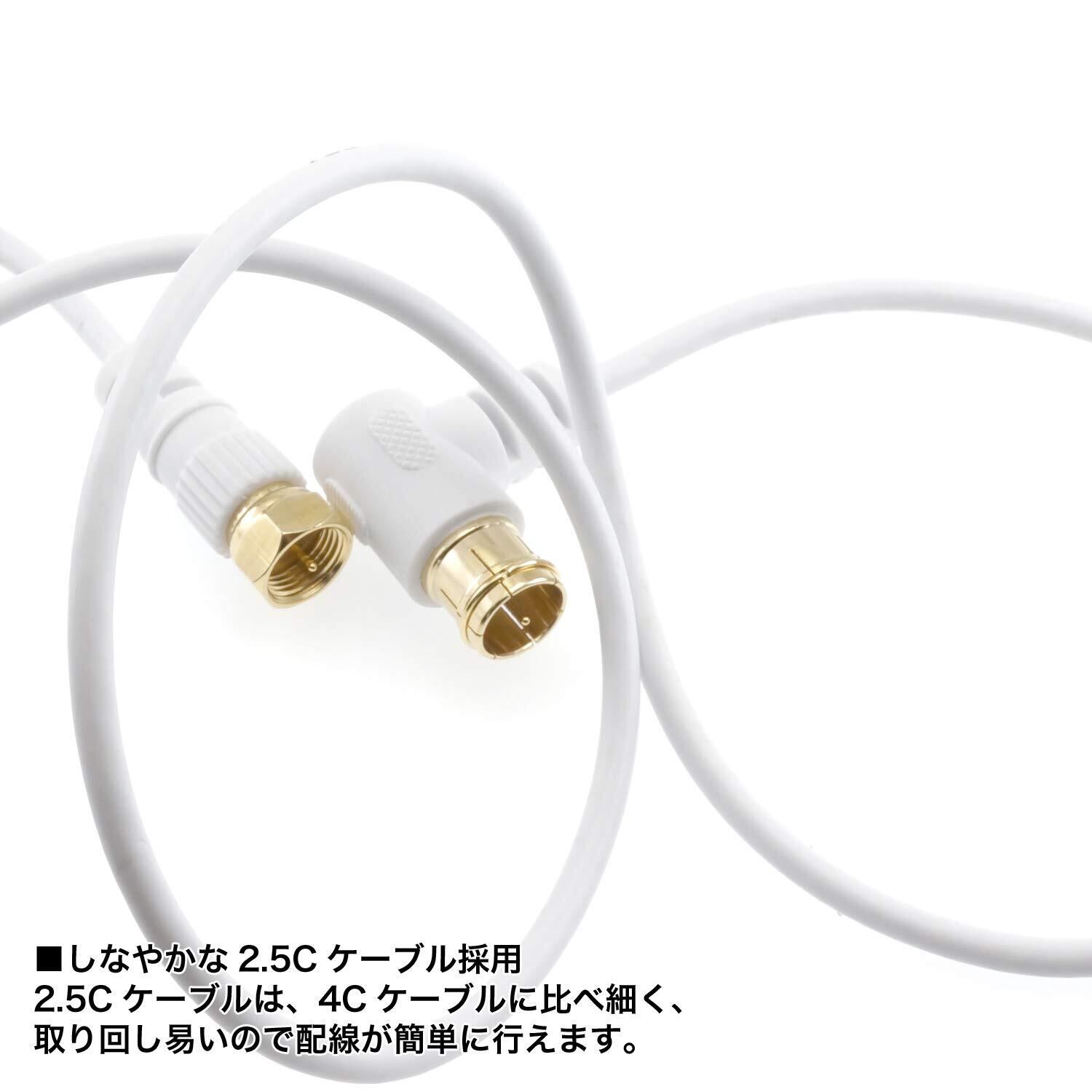 ホーリック 極細アンテナケーブル S-2.5C-FB同軸 50cm 【4K8K放送(3224MHz)/BS/CS/地デジ/CATV 対応】 ホワイト L字差込式/ネジ式コネクタ AC05-776WW