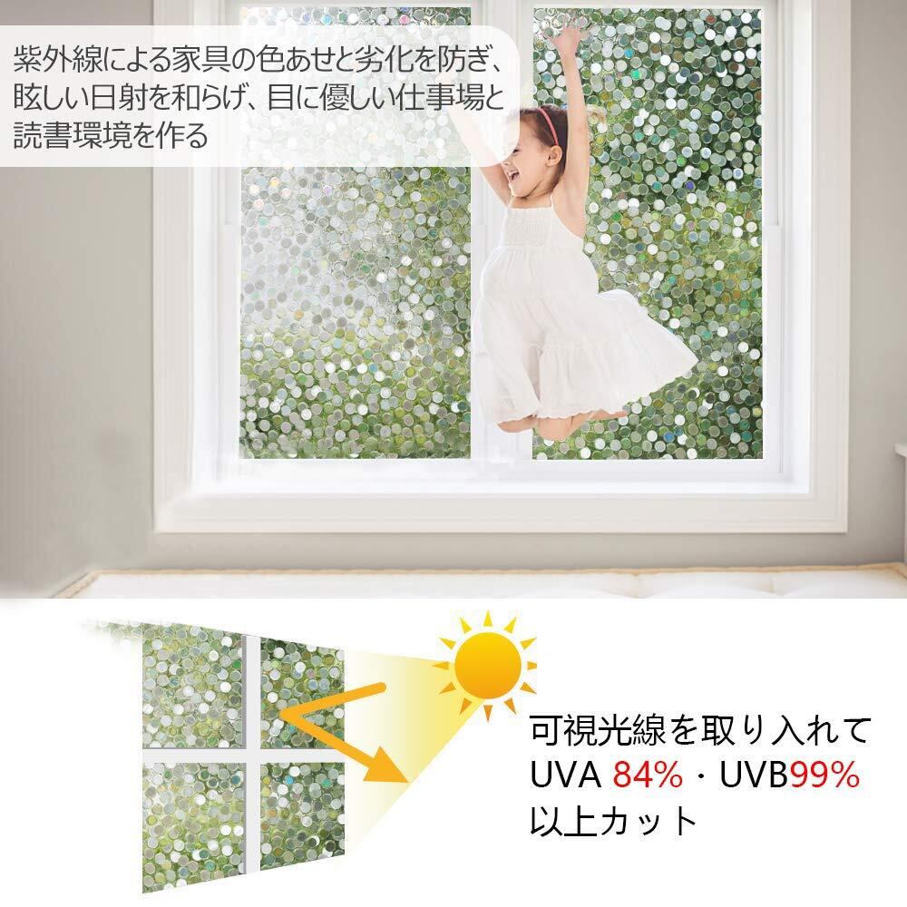 目隠し・日射調整・UVカット:明るさを保ちつつ、カーテンとさらば!20cm以上離れていれば、室内が見えにくく!天気や昼夜を問わず、いい目隠し効果があります。また、UVA 84%・UVB99% 以上カットし、日光を和らげ、内装を保護します。
