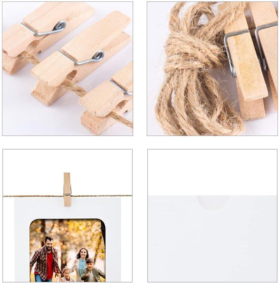 【高品質の素材】高品質のハードクラフト紙で作られたペーパーフォトフレーム,強い耐久性,損傷しにくい、環境保護。高品質の木製クリップは非常に環境に優しく、使いやすいです。麻ロープでお望みのスペースを自由に装飾できます、複数回再利用ができ、自分のデザインスタイルをアピールフォトフレーム・壁掛けをDIY手作りができます。