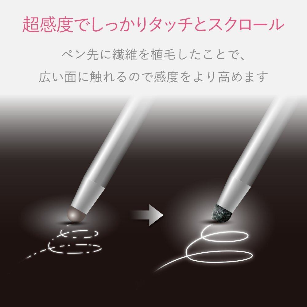 ■ペン先に植毛された繊維が広範囲の接地面積を確保することで、ペン先を押し当てることなく、滑らかに操作できる超感度を実現しました。