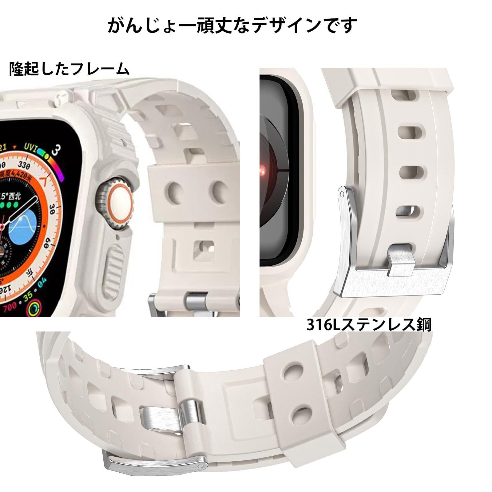 【全面保護】フレームの一体化強化デザインは、従来の分離式アップルウォッチケースと違い、衝撃を受けても合理的分散し、強きインパクトからapple watch本体を守ります。落下などによる傷からApple Watchを守ってくれます。