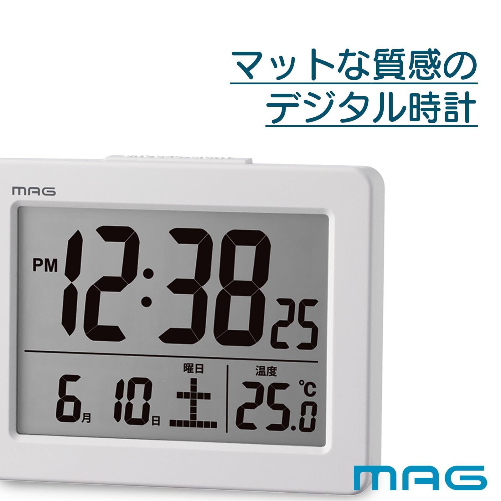 【特価セール】MAG(マグ) 目覚まし時計 置き時計 小型 小さい デジタル 温度計 カレンダー 電子音 アラーム スヌーズ ライト ホワイト ブリム T-779A WH-Z ノア精密