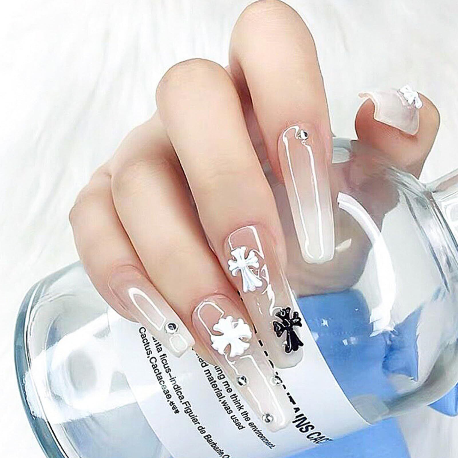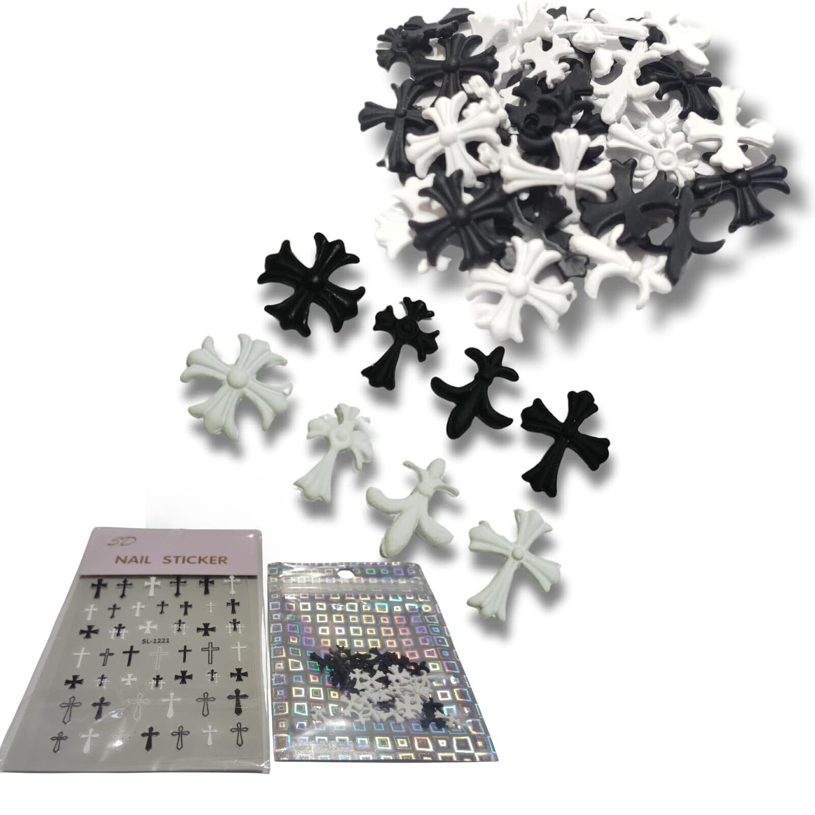 MiHarutsu ネイルパーツ十字架 黒 白 ネイルパーツ じゅうじか セット ジェルネイルパーツ 十字架 パンク メタルパーツ 4種×5×2色 40個セット (ホワイト/ブラック)