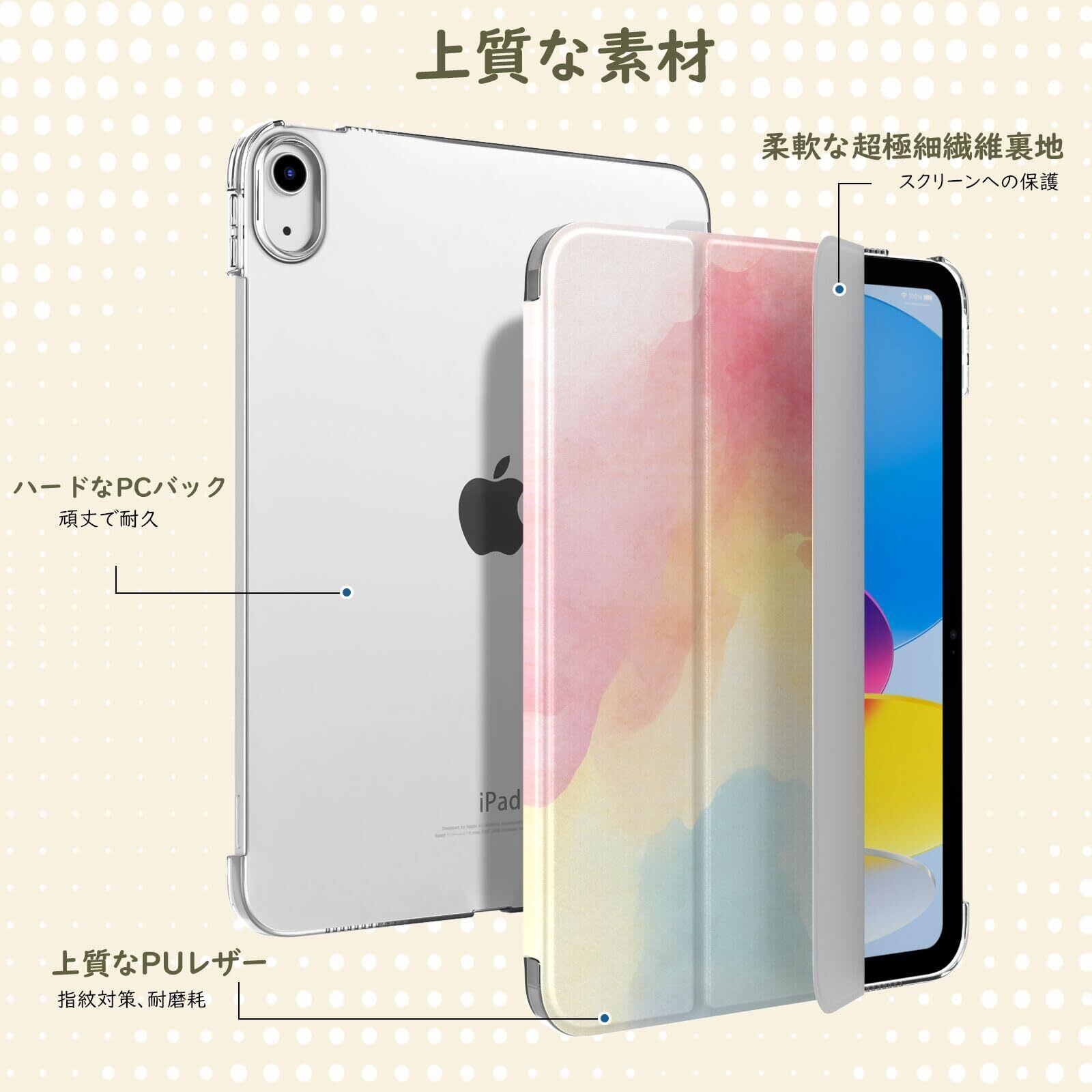 「対応機種」 2025年新発売のNew iPad (A16) 11インチ 第11世代(モデル番号:A3354/A3355/A3356)及び2022年発売の iPad 10.9インチ 第10世代(モデル番号:A2696/A2757/A2777)にカスタム設計しており、iPad Air 11 第7世代(M3)(×)、iPad Air 11 第6世代(M2)(×)、iPad Air 10.9 第5/4世代(×)、又は他のモデルには適用しません。購入する前にタブレットの機種/モデル番号を確認してください。
