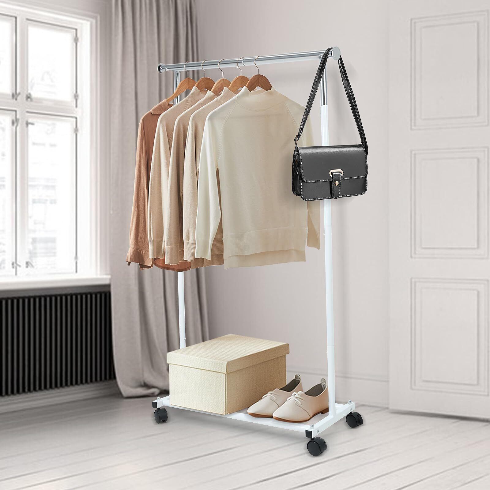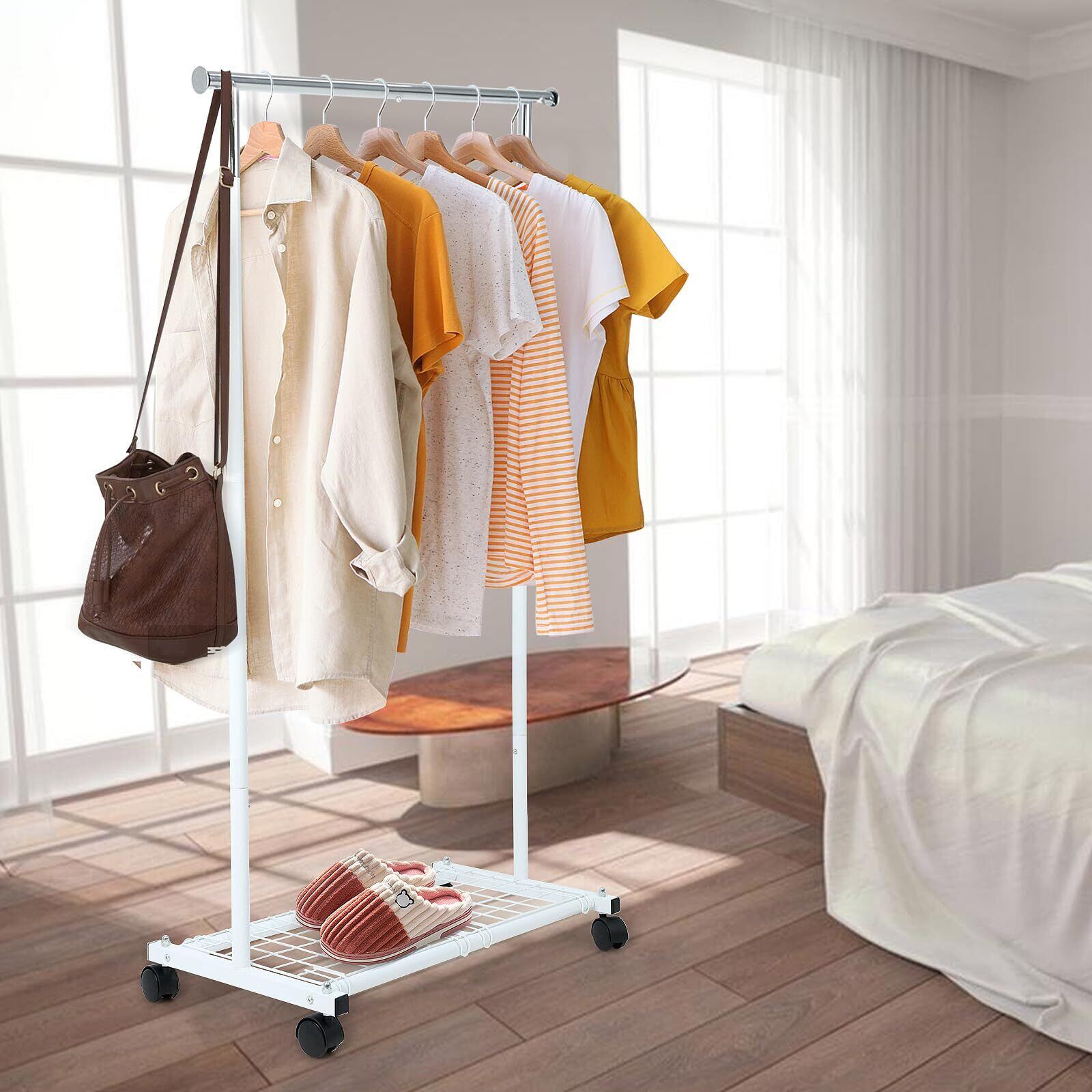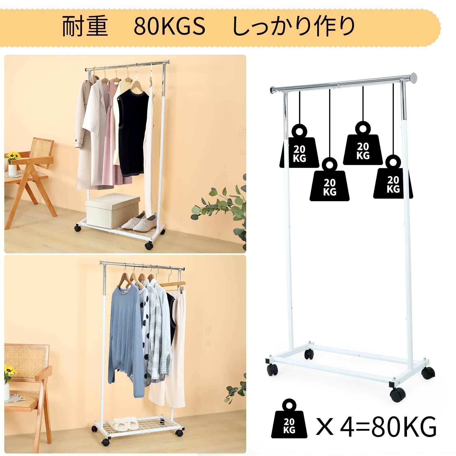 HANKEY ハンガーラック シングル、高さ調整可 室内物干し キャスタ付き 白
