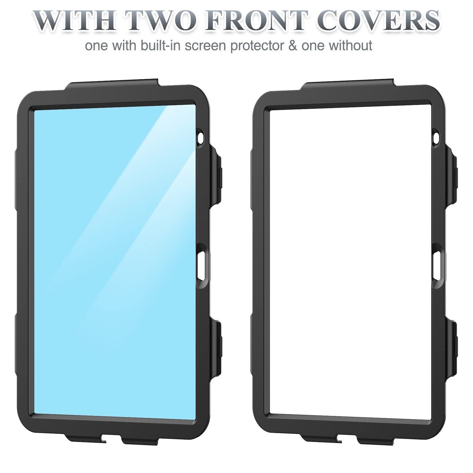 SEYMAC stock iPad(A16) 第11世代/第10世代専用ケース 耐衝撃 ペンホルダー フィルム付き前面カバー 横置き縦置きスタンド 360度回転ハンドストラップ ショルダーストラップ付き(ブラック)