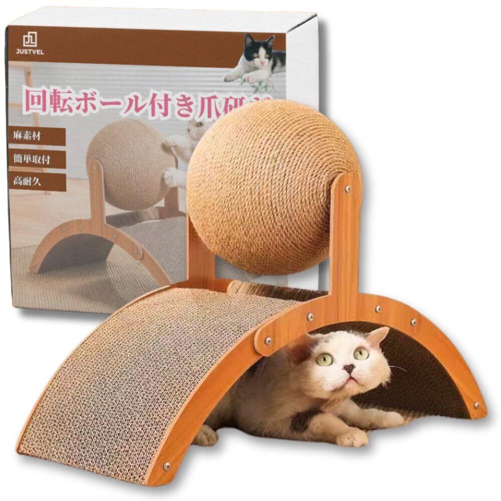 JUSTVEL 猫 爪研ぎ 回転ボール付き ネコのストレス発散に アーチ型 トンネル 簡単組立 ストレス発散