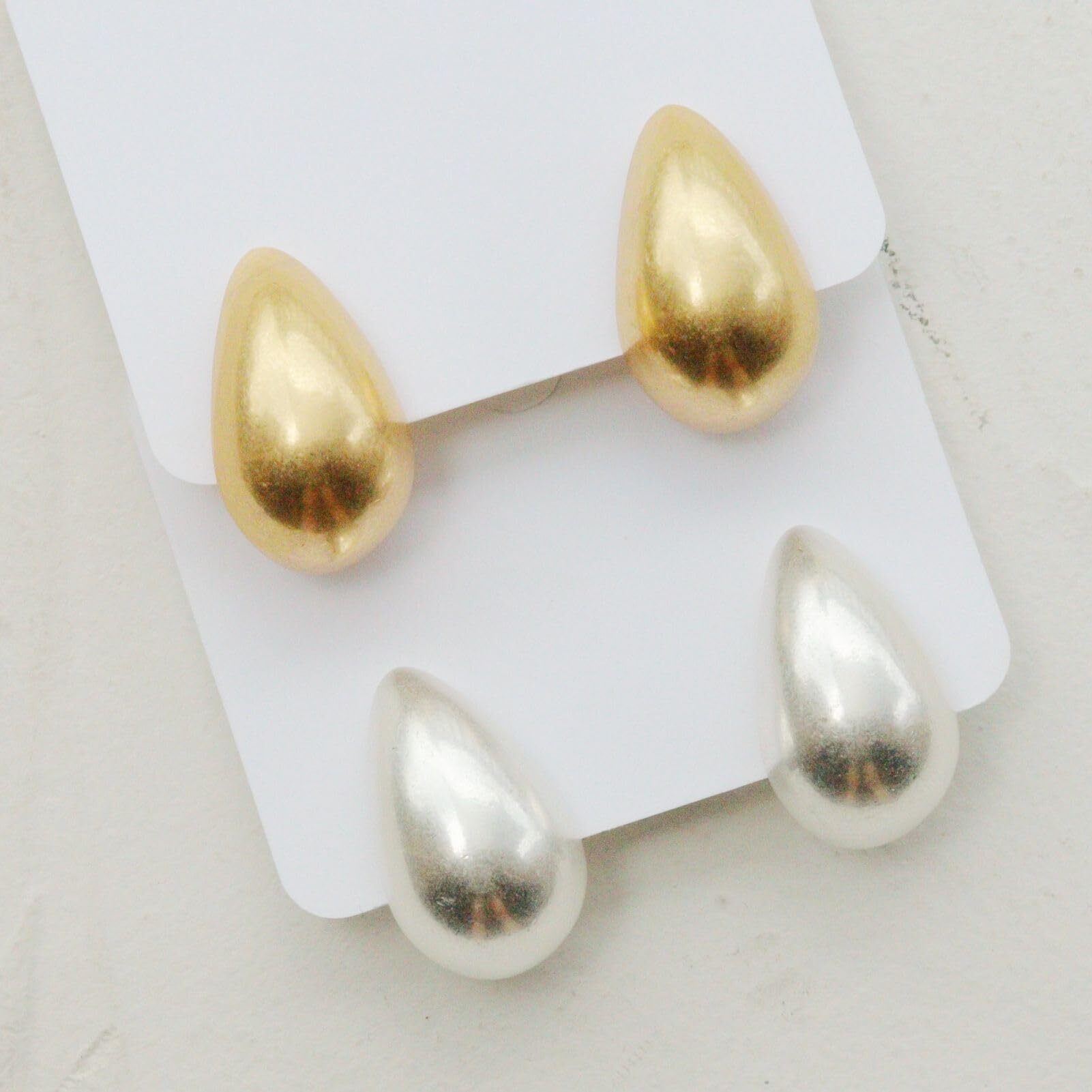 ぷっくりとしたフォルムが魅力のドロップ型メタルイヤリング。