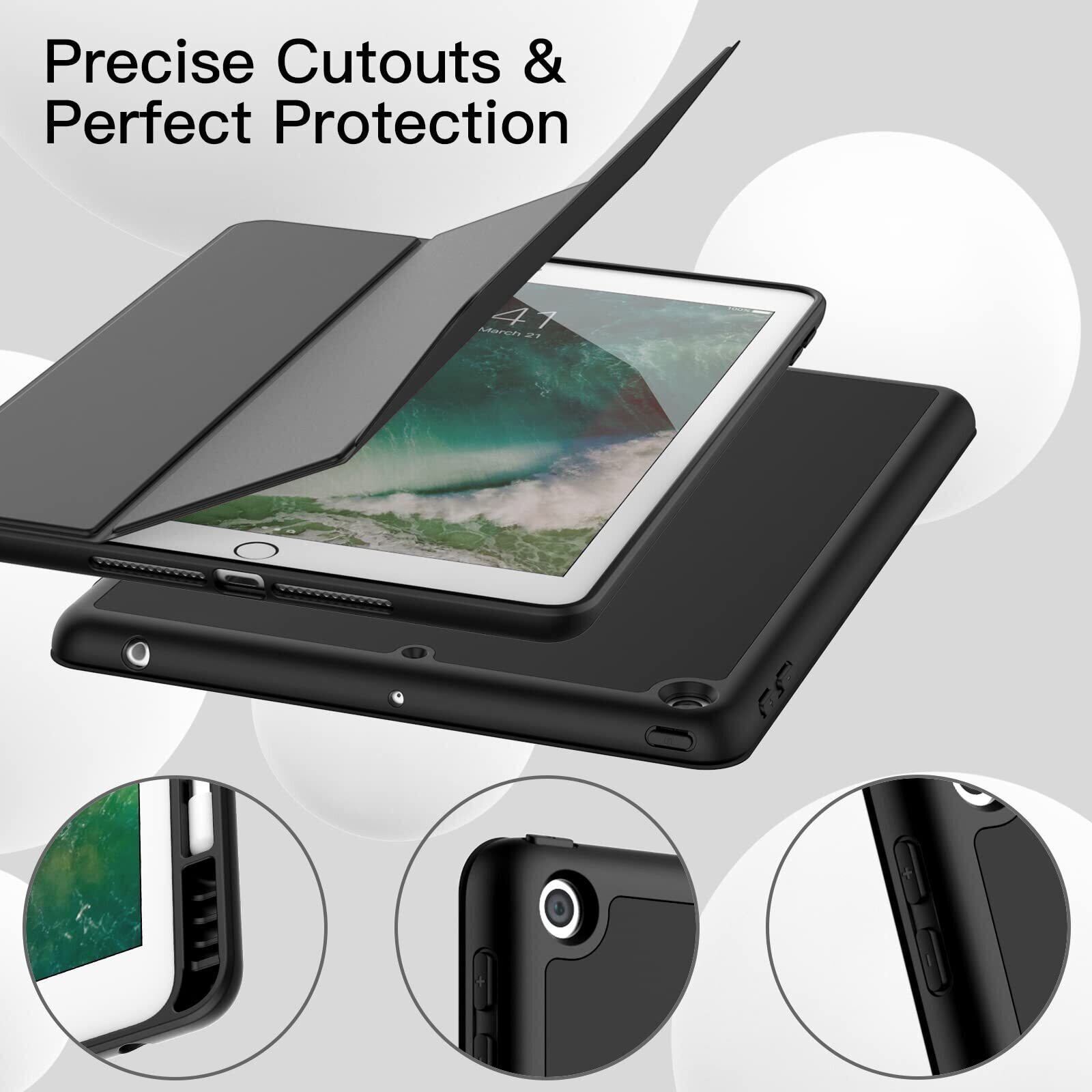 JETech iPad 9.7インチ ケース(第6/5世代、2018/2017モデル用)Pencilホルダー付き ペンシル ソフトTPUバック スリム保護カバー オートウェイクアップ/スリープ機能付き (ブラック)