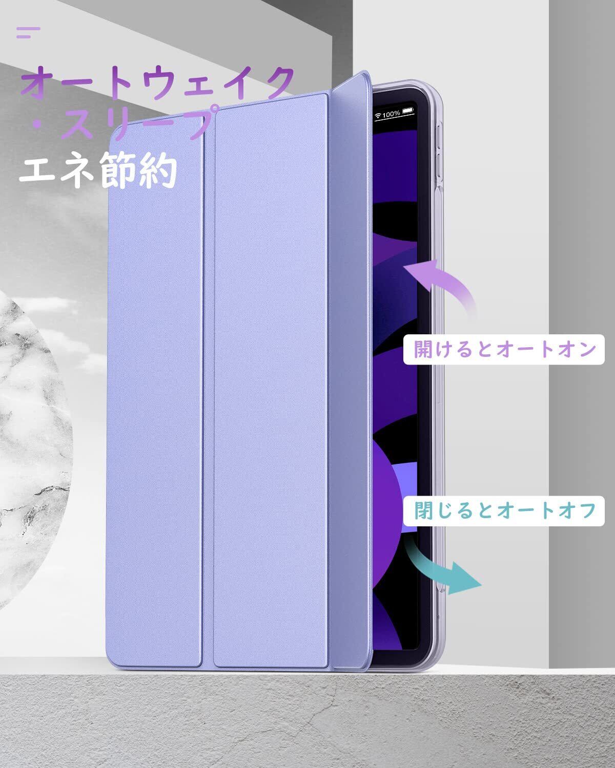 iPad Air 11インチ 第7世代/第6世代 ケース 2025/2024 Dadanism iPadAir 11 M3/M2 2025年新モデル iPad Air 5 Air 4 10.9インチ カバー Air 11インチ/第5世代 第4代 ケース オートスリープ PencilPro/第2世代ワイヤレス充電 PU+TPU 三つ折り スタンド 半透明 ソフト ラベンダー