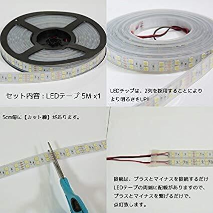 【数量限定】LEDテープライト高輝度 5m 防水 24V 600連SMD5050 二列式 強力 簡単設置 明るい おしゃれ 長持ちカバー付 白 ホワイト 白ベース 正面発光 屋外/ショーケース/漁船/船舶/トラック/航海灯/屋外照明/led間接照明 (24V ホワイト)