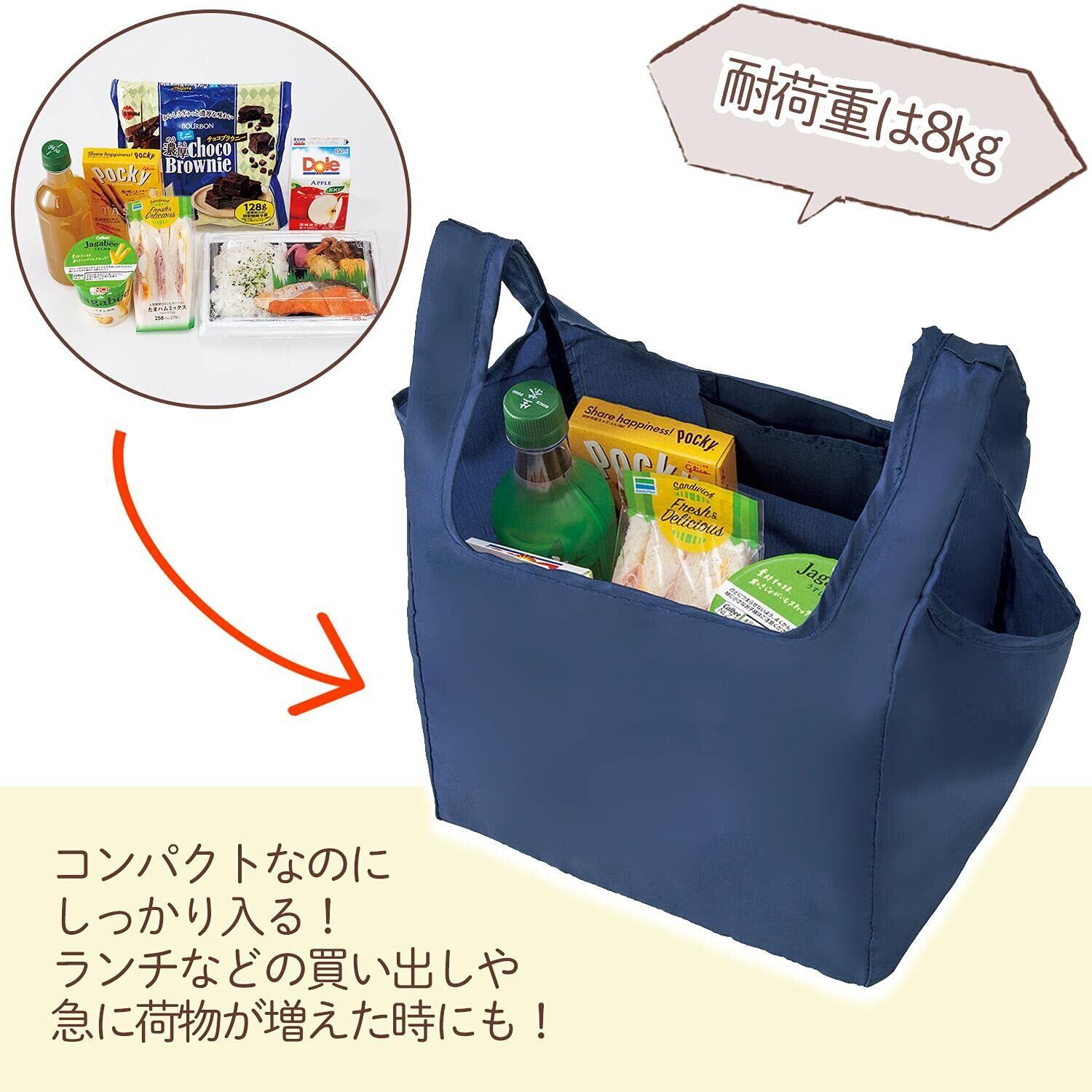 コモライフ 持ち歩きエコバッグ 2色組 レジバッグ コンビニ弁当 惣菜 平らに入る マチ広 底広 コンパクト 折りたたみ 無地 約縦22×横26×マチ21cm 耐荷重8kg