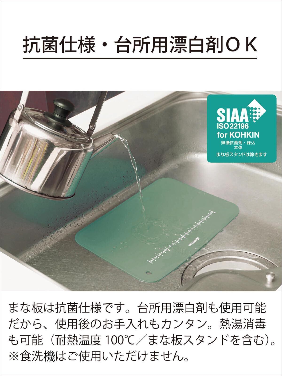 素材・材質:ポリプロピレン[熱可塑性エラストマー](耐熱温度100度)、付属品:まな板スタンド