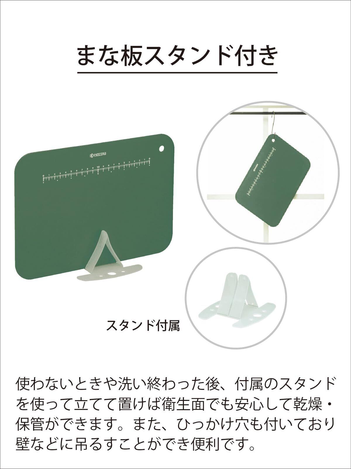 【特価商品】京セラ まな板 抗菌 柔らかい 軽量 目盛り スタンド 付き シートまな板 カッティングボード 漂白 除菌 OK ボタニカルグリーン 日本製 CC-09BGAZ