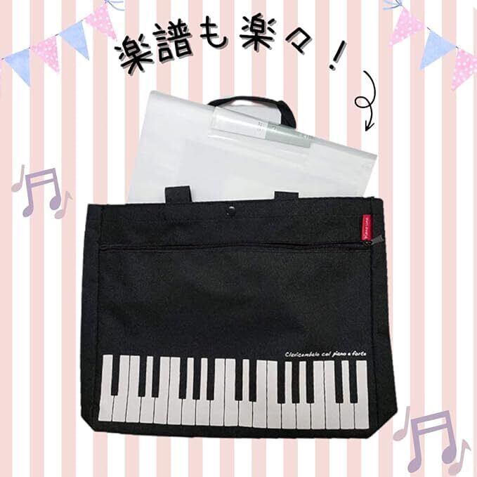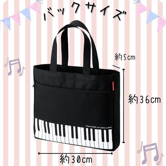 【在庫セール】[バレエ専門店ミニヨン] ピアノ ピアノライン piano line レッスンバッグ ポケット付き トートバック ピアノ 楽譜入れ
